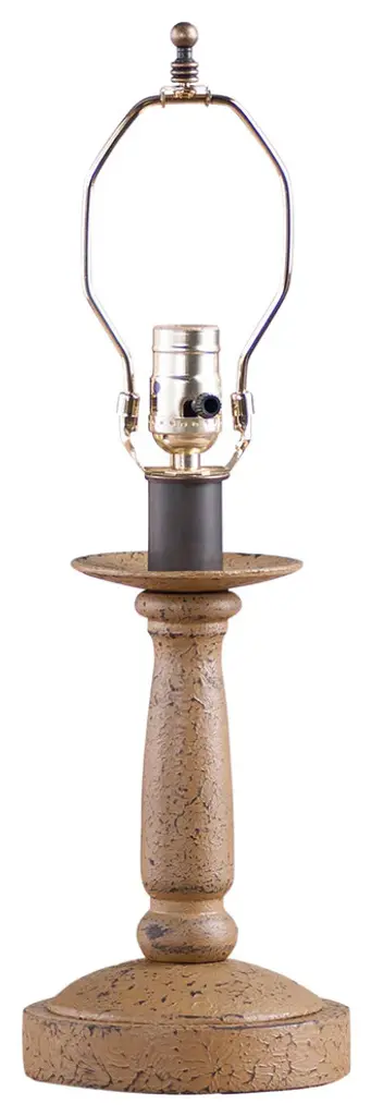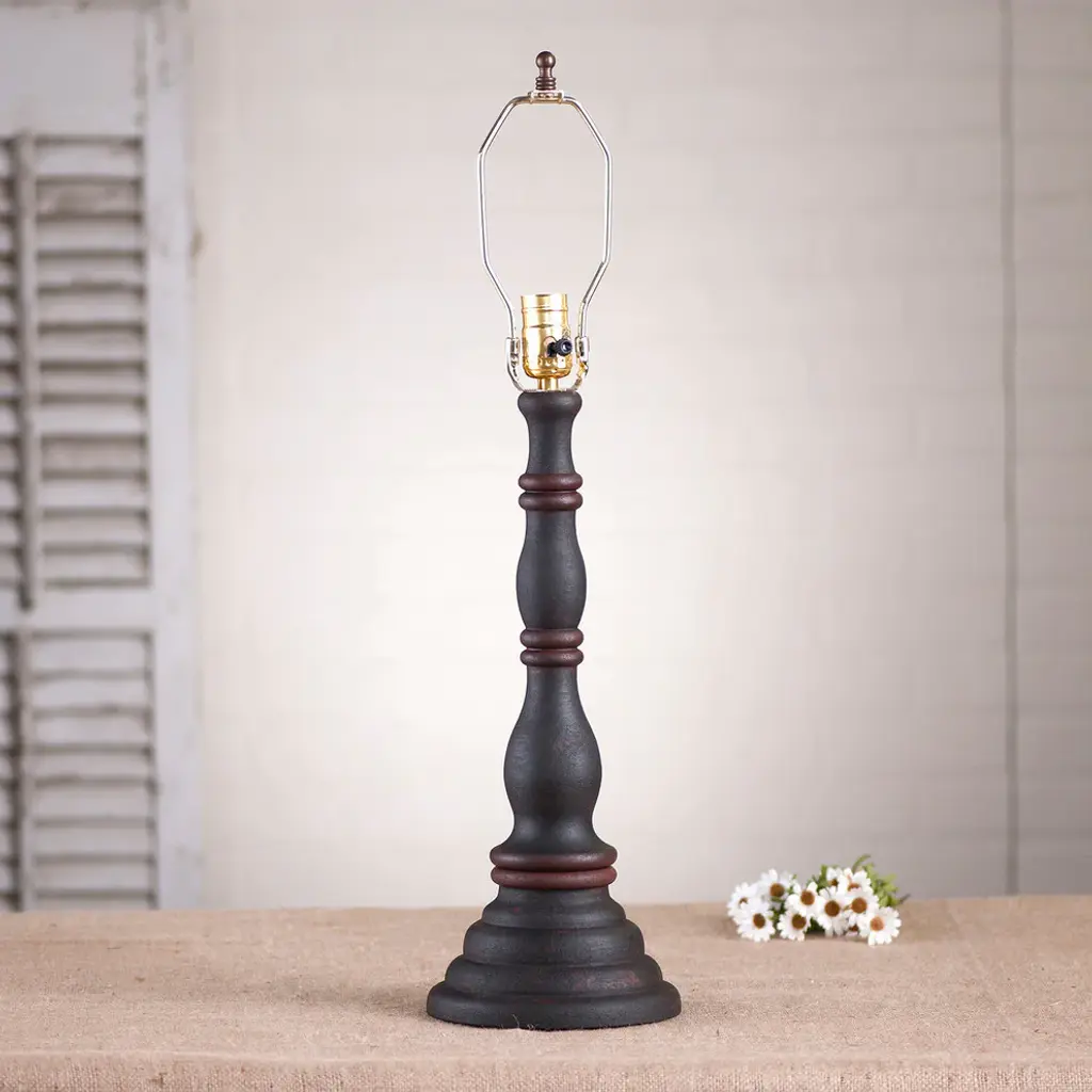 Measures 18.75-Inch high and 6-Inch diameterHas a 7-foot cord and line switch; Plugs into wall outlet; Standard socket, 1 x 150 watts maximum watts. UL listed for dry locationsTextured pearwood paint finish; Shade not includedMade In USAThe Butcher''s Lamp Base is a smaller sized lamp base that is perfect as an accent lamp or a bedside lamp.One E26/Medium (Standard) socket, 150 watts max. Textured Pearwood body color. Handcrafted in Pennsylvania. This lamp base is UL-CUL approved and has a 5 year guarantee.