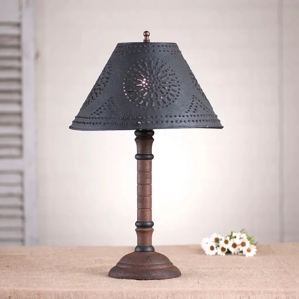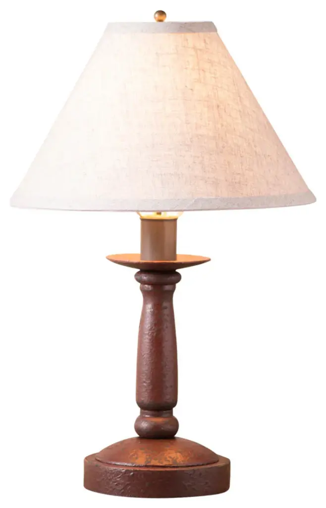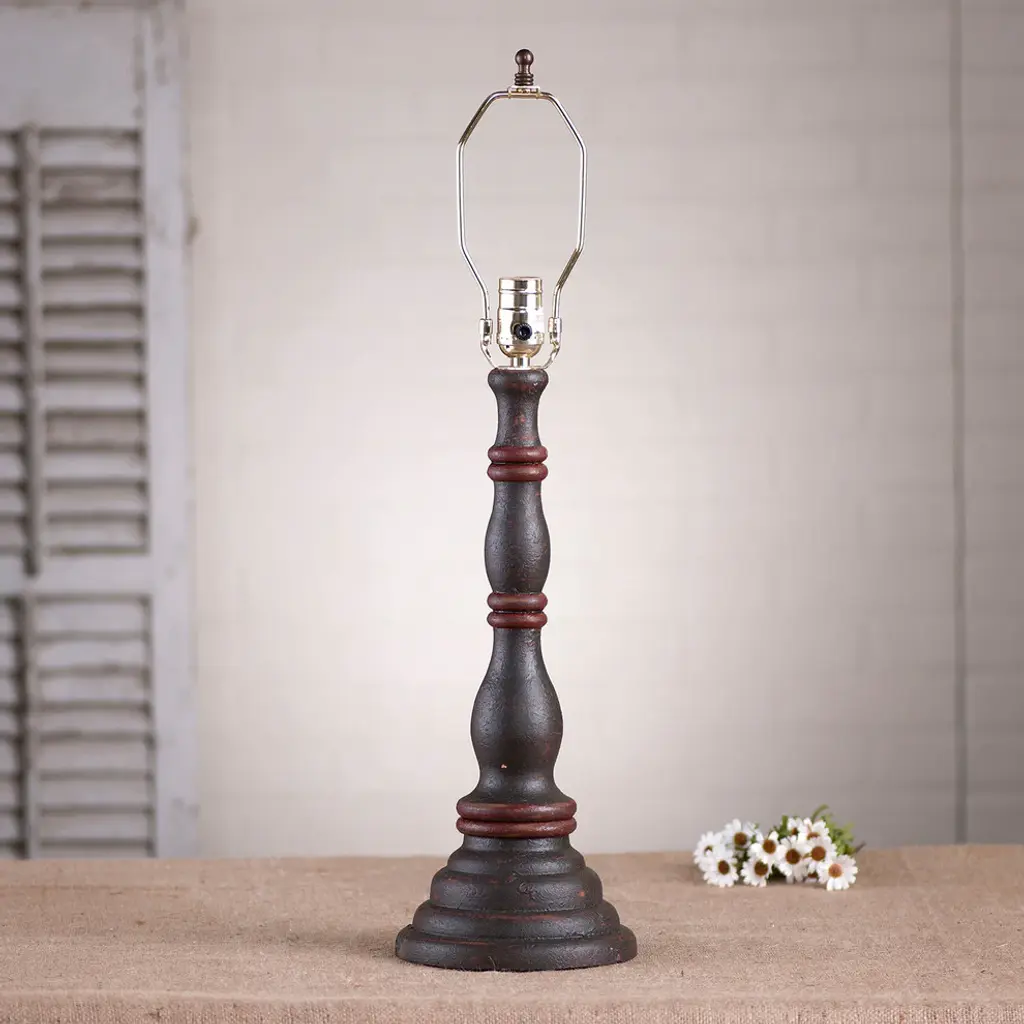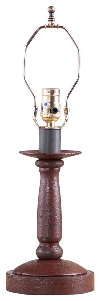 Measures 18.75-Inches high and 6-Inches in DiameterHas a 7-foot cord and line switch; Plugs into wall outlet; Standard socket, 1 x 150 watts maximum watts. UL listed for dry locationsTextured dark red paint finish; Shade not includedMade In USAThe Butcher''s Lamp Base is a smaller sized lamp base that is perfect as an accent lamp or a bedside lamp.One E26/Medium (Standard) socket, 150 watts max. Textured Plantation Red body color. Handcrafted in Pennsylvania. This lamp base is UL-CUL approved and has a 5 year guarantee.