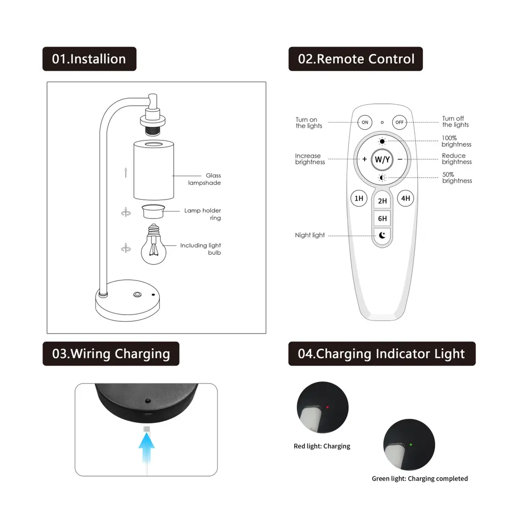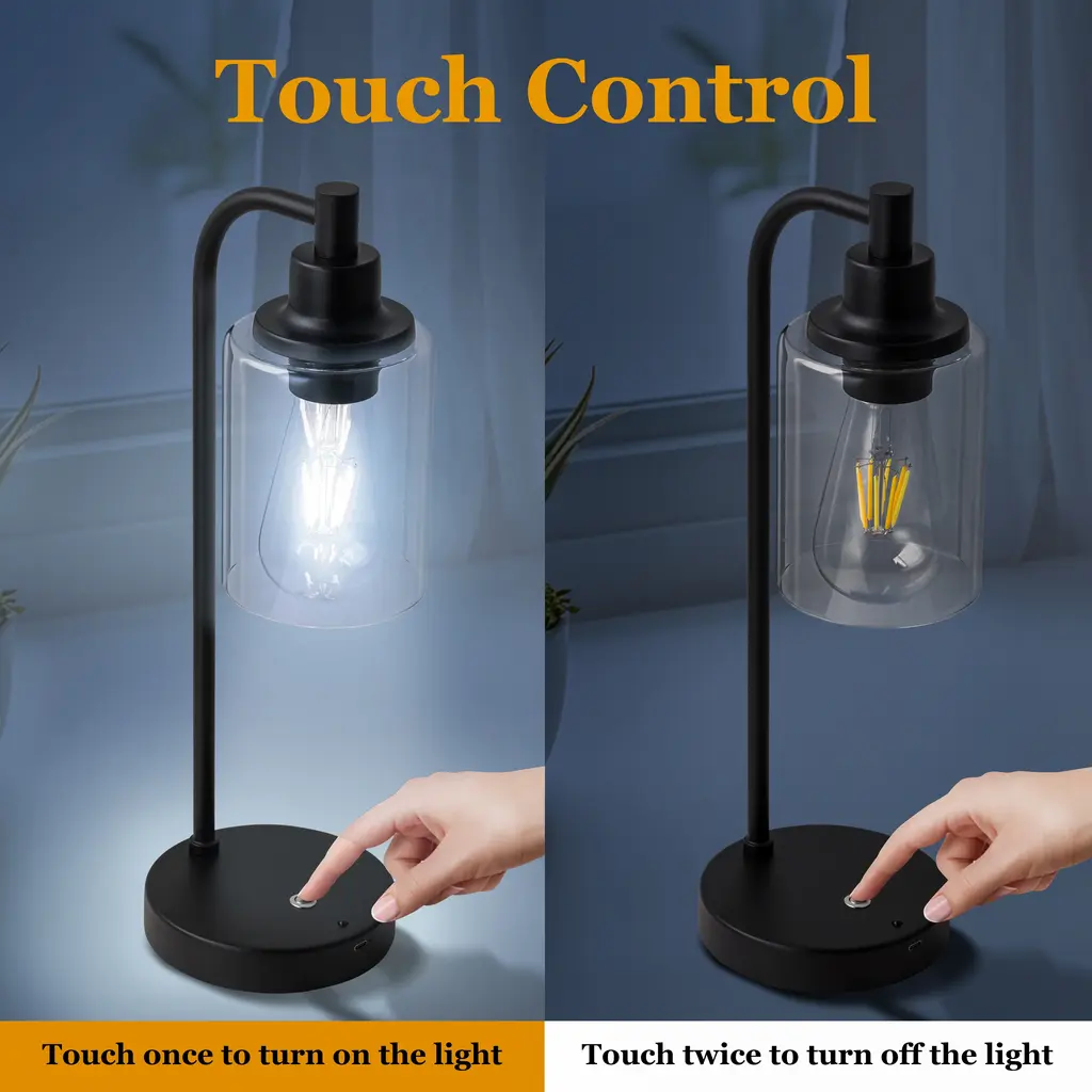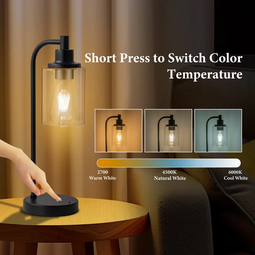 Featuring a matte black finish with a clear glass shade, this modern minimalist table lamp perfectly blends elements of both modernity and elegance. It offers three colour temperature options (2700K/4500K/6000K), adapting to different scenarios and ambience needs. The dimmable desk lamp allows you to freely adjust the brightness to create an ideal lighting experience, whether for reading, working or relaxing. Support touch control and remote switch, convenient operation. Whether placed in the bedroom, living room or under the cabinet, it can seamlessly fit into your space, adding practicality and aesthetics to your home.