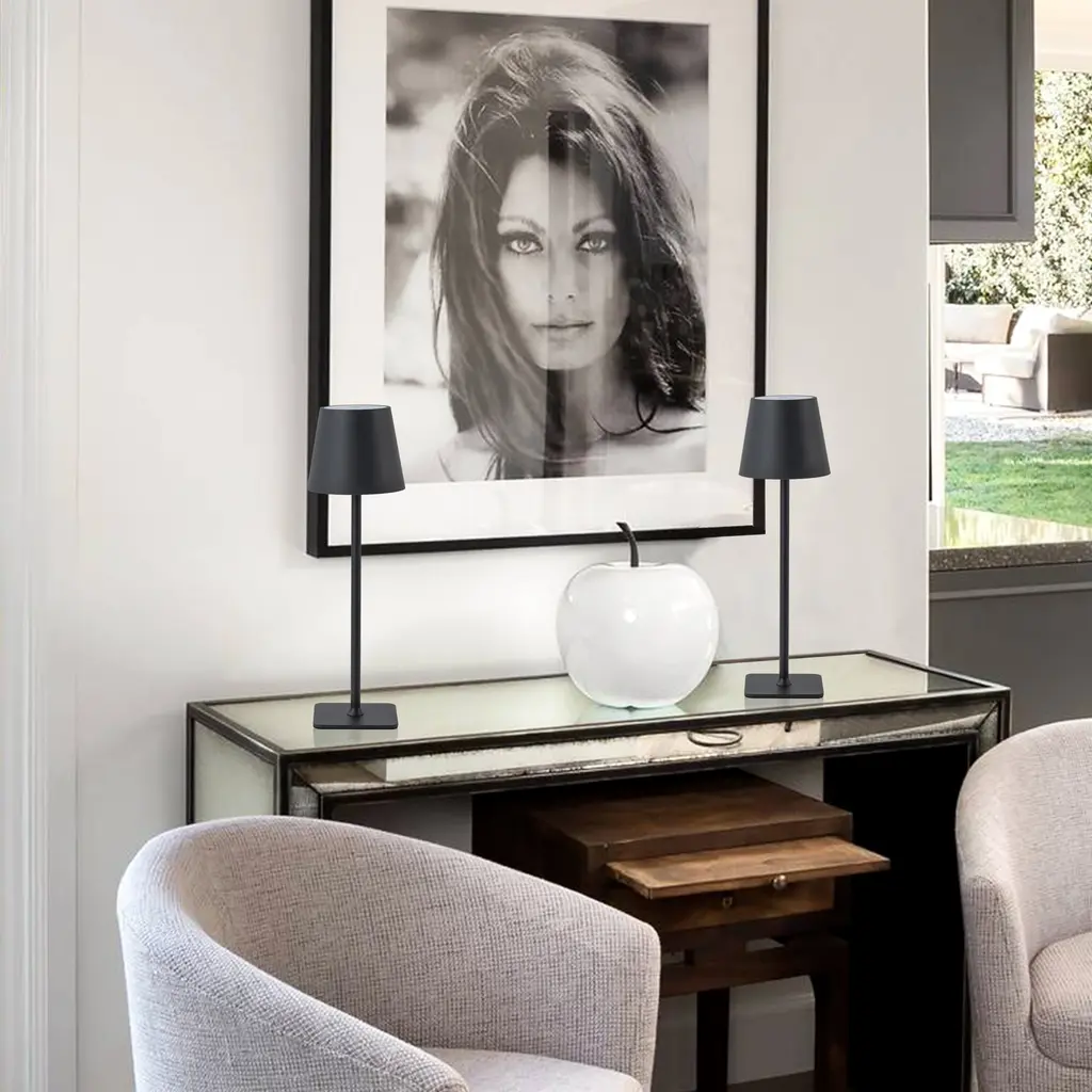 This stylish and portable LED table lamp features a minimalist modern design with a classic matte black finish that is elegant and versatile, easily blending into any interior space. Equipped with a sensitive touch switch on the top, it can be adjusted to three color temperatures (3000K/4500K/6000K) and brightness to meet a variety of lighting needs. Built-in rechargeable battery frees you from the constraints of traditional wired table lamps, allowing you to use it anytime, anywhere.Ideal for bedroom,living room,restaurant or under cabinets.