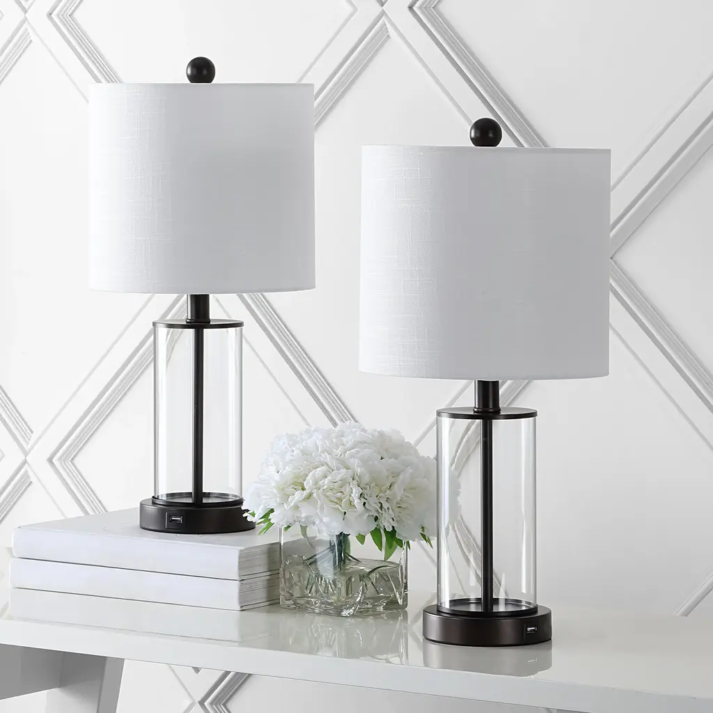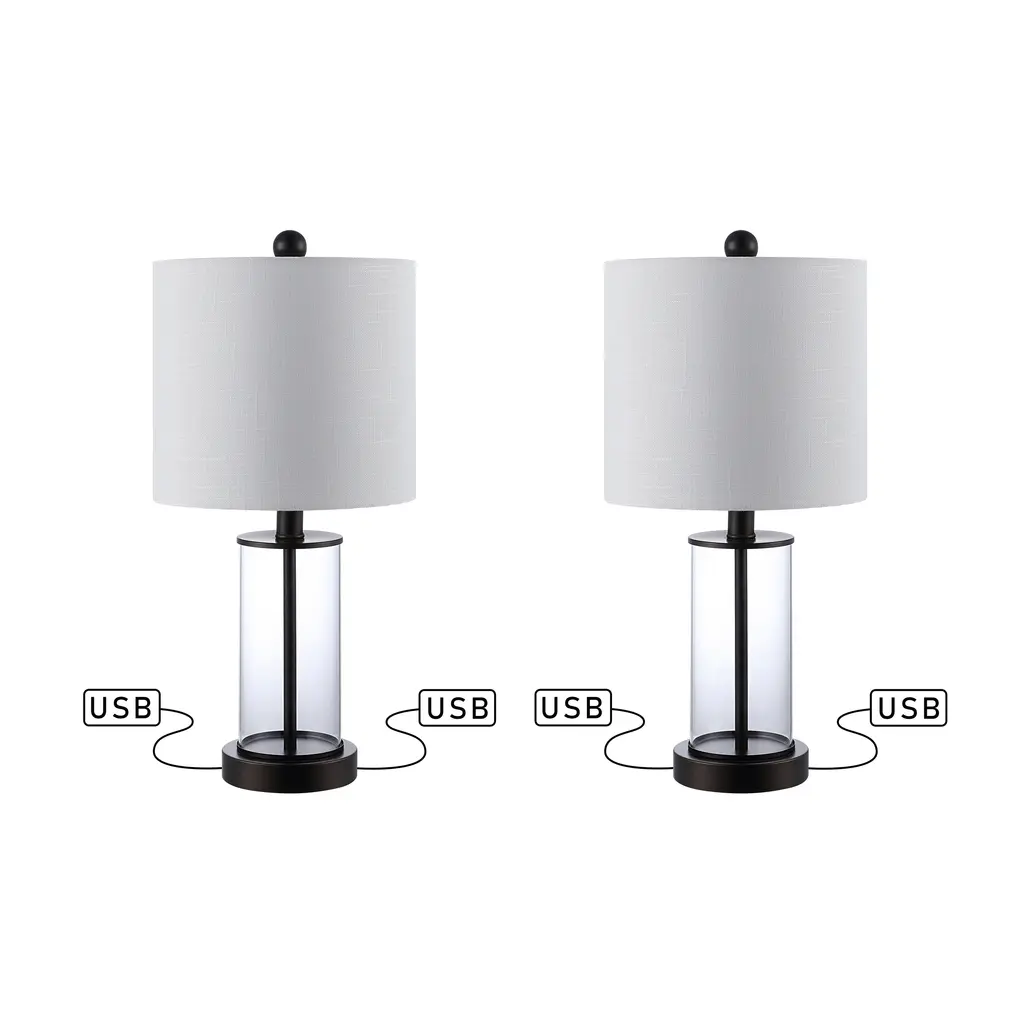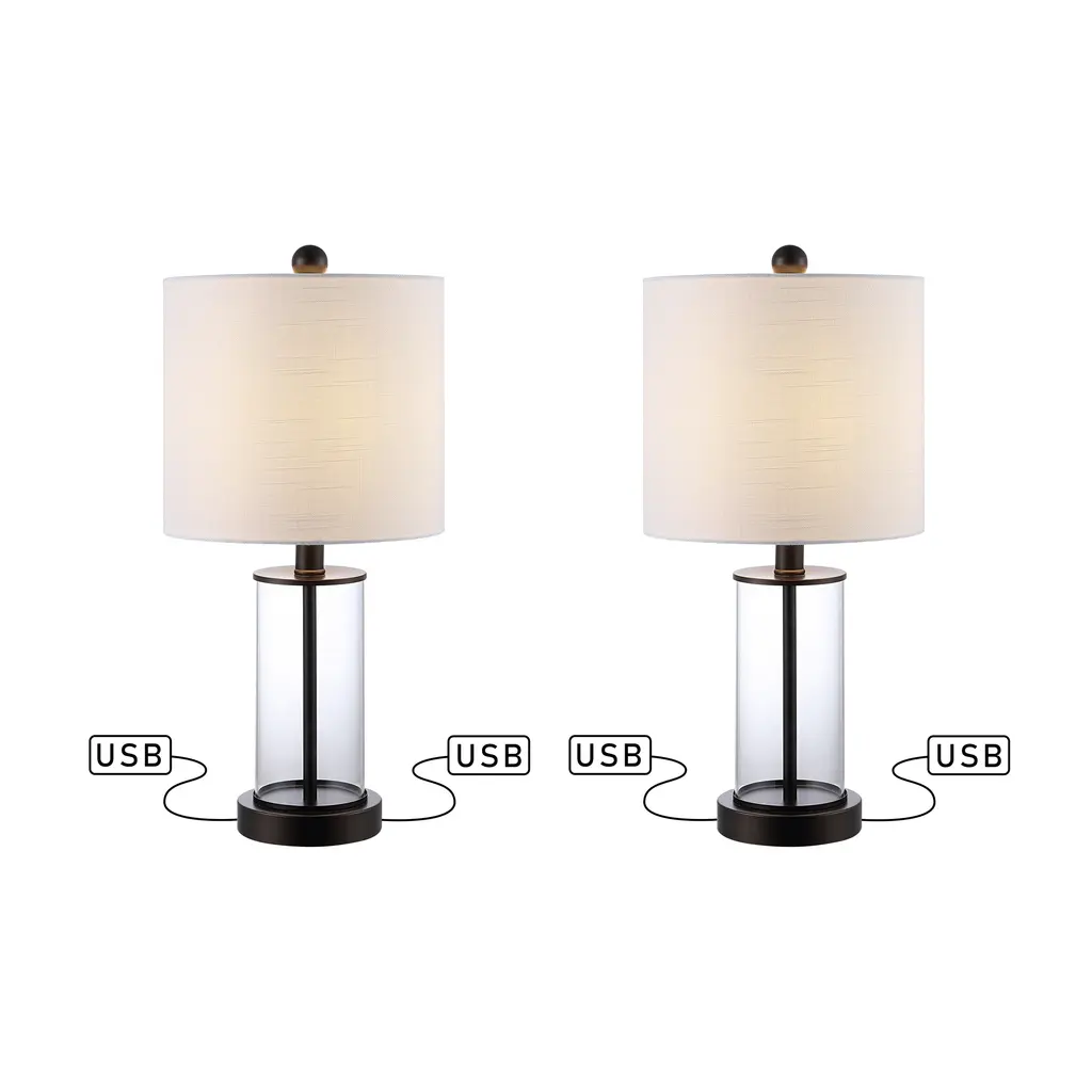 Cabell 21" Glass Modern Contemporary Usb Charging Led Table Lamp, Oil Rubbed Bronze (Set Of 2) By Jonathan Y - Oil Rubbed Bronze/clear