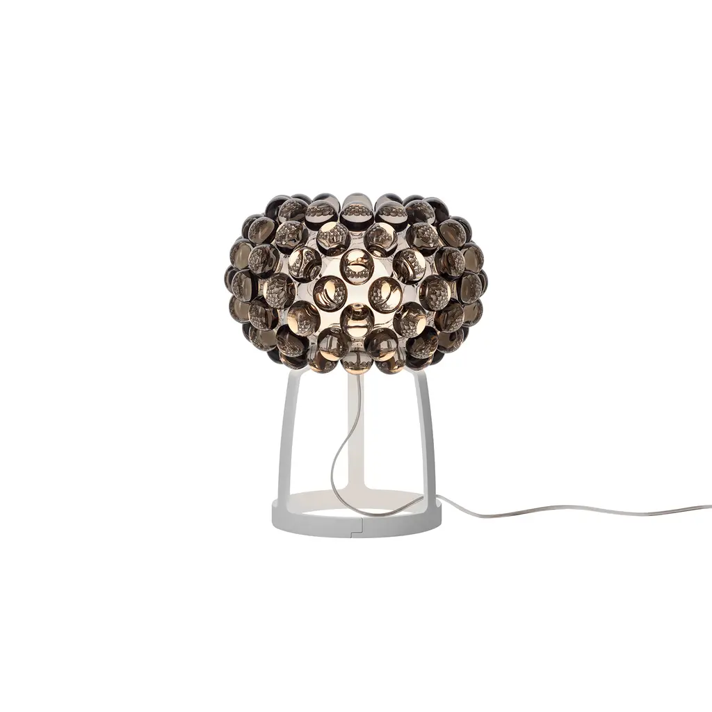 Clusters of clear acrylic beads wrap the Caboche Table Lamp like a bracelet of glass, catching and bending every bit of light that slips through. Switch it on and the glow rebounds inside the tiny spheres, then spills outward in a full 360°, bright enough to paint the desk and the wall behind it. A satin-blown inner shade keeps the beam even, no glare—just a steady, jewel-toned halo. Three slender supports meet at the center to form the round base, echoing the diffuser’s shape and giving the lamp a sense of lift despite its sparkle. Designed for Foscarini by Patricia Urquiola and Eliana Gerotto, Caboche turns a simple table corner into a small stage set—equal parts sculpture, chandelier, and task light. Made in Italy; dimmable with most inline desk dimmers (bulb included).