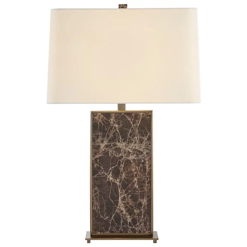 From a small collection of complementary table lamps in different shapes, the Caccia Rectangular Table Lamp is the definition of refined contemporary style. Featuring a block of Calcatta gold marble encased in brass with a satin finish, the table lamp comes with a chic rectangular shade. \nBulbs: 2 x E27.