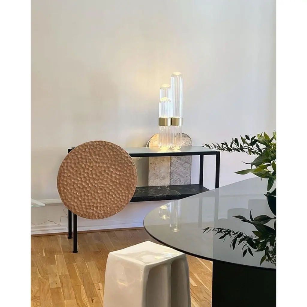Cactus Big Transparent Polished Brass Lamp by PulpoDimensions: Ø 30 cm x H 100 cm.Materials: Borosilicate glass and polished brass.Available in different finishes: transparent black, transparent brass, smoky grey black, smoky grey brass. Also available in small size (Ø 30 x H 100 cm). Please contact us. The symmetry of tall grown, succulent ensembles inspired French designer Mickaël Koska to form an illuminating sculpture for living spaces. His work with cactus underlines what he calls "to give life to surprising natural creations", preferring simple lines and focus on the essential.Each piece is made of borosilicate glass and the centrpiece is from alumiunium.All our lamps can be wired according to each country. If sold to the USA it will be wired for the USA for instance.Pulpo is a design editor for high-end products in the home sector.Design is our passion. Art is our engine. We are fascinated by the Craft of the ceramic and glassblowing workshops and are guided by the rough aesthetics of these unique pieces.Pulpo’s philosophy goes back to the IDEA of ??the “carte blanche”. Our designers and artists develop their designs freely and experimentally. A variety of materials and a weakness for structures are our strengths.The headquarters of pulpo is in Weil am Rhein, near the Swiss border. Consisting of the creative and sales department, warehouse and logistics, this is the think tank for our artists and designers. pulpo’s dealer network extends far beyond Weil am Rhein – from Iceland and Dubai to Australia.Pulpo is movement – is possibility – is passion.In 2006, pulpo was founded by Ursula and Patrick L’hoste as a design brand at the interface between shape and Material. pulpo’s conception is to edit lighting, furniture and accessoires on editor’s choice. The company’s focus is to conduct up-and-coming designers and selected manufacturers, using the nature of Material’s to form the score. Materials such as ceramics, stone and especially glass, which is pulpo’s primary focus since 2013.