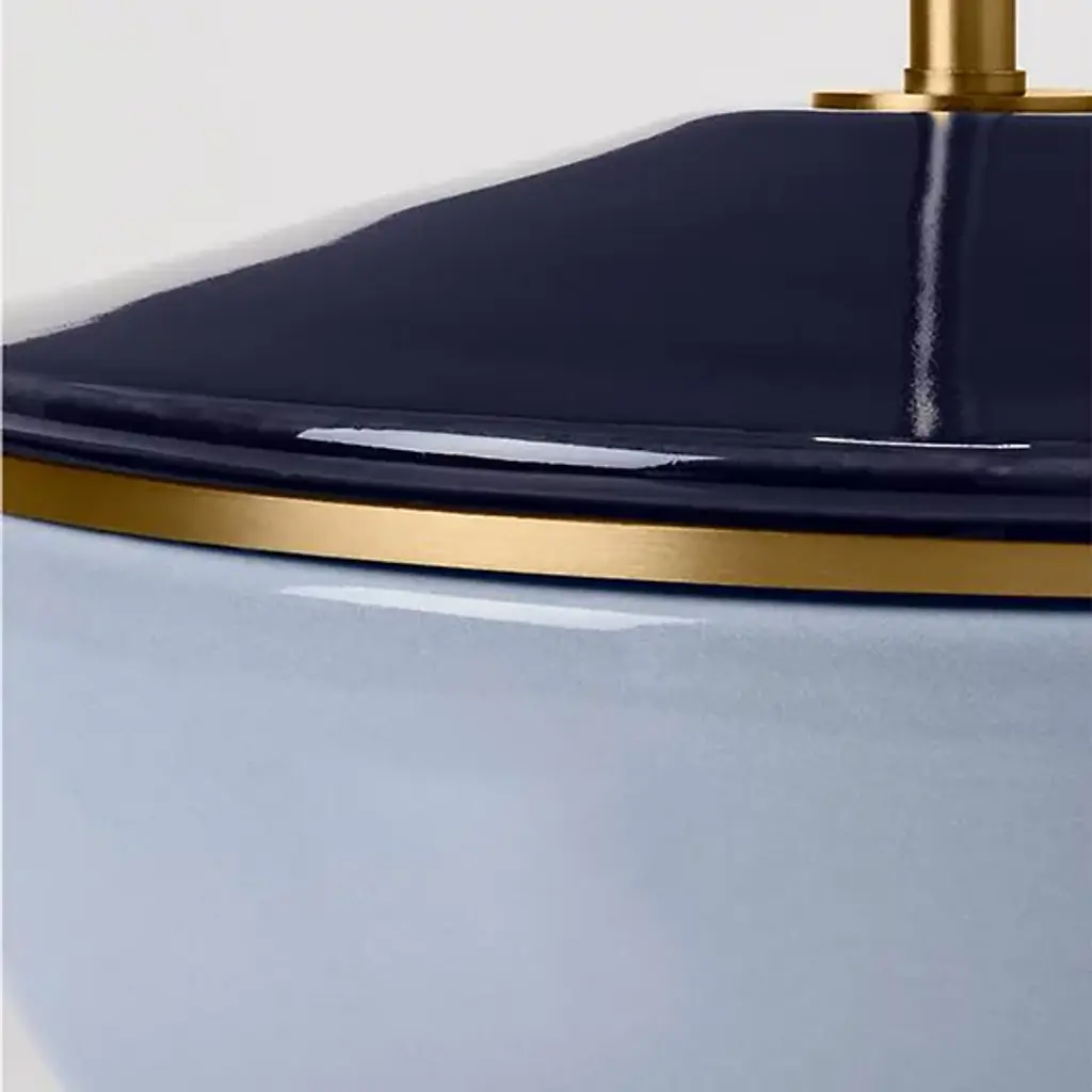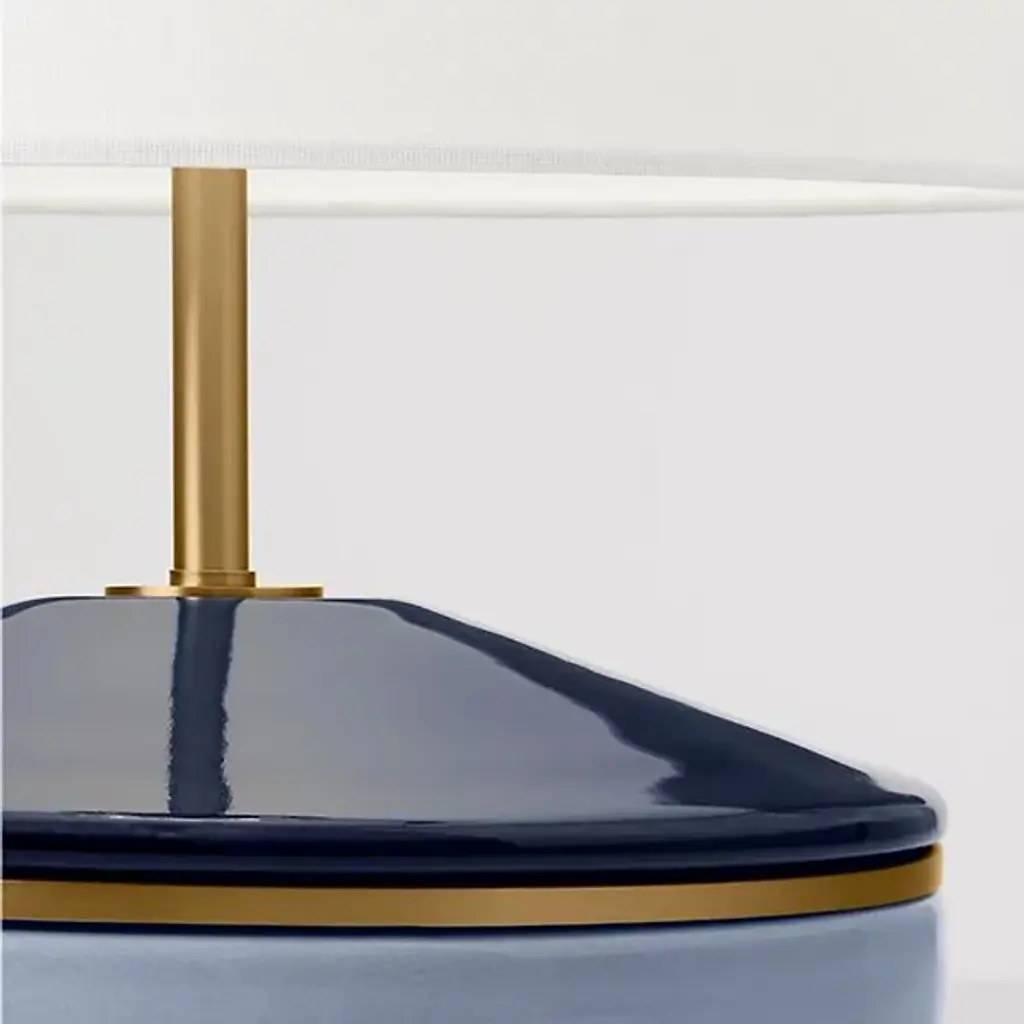 Presented by Visual Comfort Studio and designed by Kate Spade New York, the Cade Medium Table Lamp is inspired by color-blocking on playful yet simple geometries. It features two glazed ceramic forms combined with simple brass details, evoking the look of color-blocked jewelry. Display Cade as a solo piece, in pairs, or in multiples to animate locales of choice with light and style.