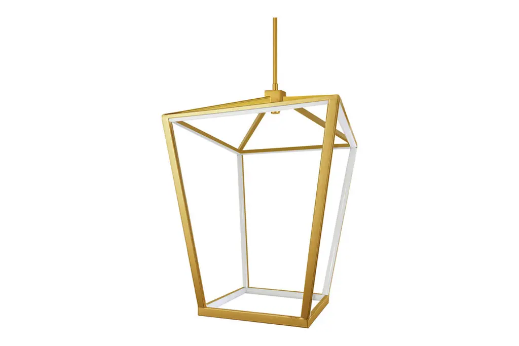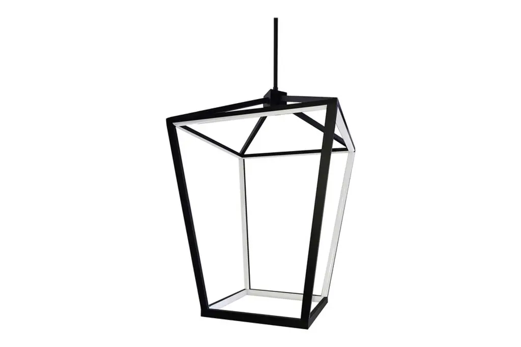 Strong minimalism with geometric proportions, the Cage Chandelier is an artistically sculptural hanging lamp ready to captivate your home with its floating luminosity. Its sharp angles and clean-cut lines form a unique silhouette brightened by its integrated LED lights. Its empty space in the center evokes feelings of serenity and tricks the eyes into wondering where the glow radiates from. Its made from sturdy painted metal and durable silicone for a versatile color palette to choose from. The perfect representation of contemporary sculptional design, it is truly a beauty all its own. Choose from a selection of finishes and sizes to meet your preference.Small: 13"diameter x 20"h, 6 lbs Large: 17"diameter x 26"h, 8 lbs Canopy/Back Plate Height: 1.5" Canopy/Back Plate Depth: 9" Canopy/Back Plate Width: 9" Drop Maximum Length: 66.5" Drop Minimum Length: 35.5"