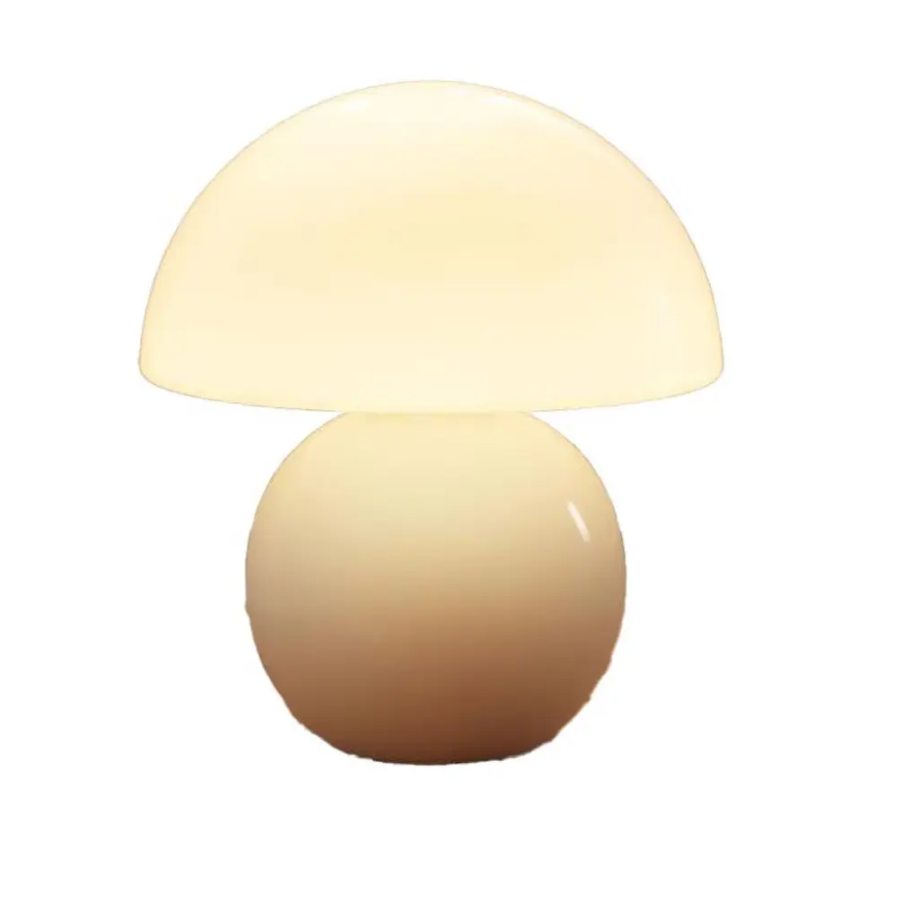 Cahuama table lamp offers a combination of modern design and natural elements to your bedroom. This mushroom night light with ceramic base provides soothing light with a unique opal glass without bright fluorescence killing the vibe. The E12 LED bulb has a warm light effect and this table lamp can be placed anywhere with a black plug-in cord and 1-40 Watt E26 bulb for you to relax.Ceramic BaseOpal Glass ShadeLED CompatibleBlack Plug In CordRequires 1-40W E26 Bulb Not IncludedFinish: Light Brown, White OpalWeight: 3.5 poundsSwitch Type: In LineSwitch Location: CordSystem Type: Plug-InShade Dimensions: 10.75 inch length x 10.75 inch width x 5.7 inch heightLamp Base Dimensions: 9" Dia x 6.18" HStem Length: 56 inchesCord Length: 56 inchesSocket Quantity: 1Bulb Shape: A19Socket Type: E12Light Bulb Included: NoFixture Dimmable: No