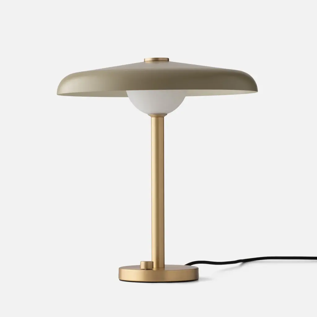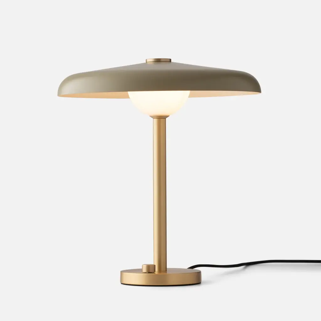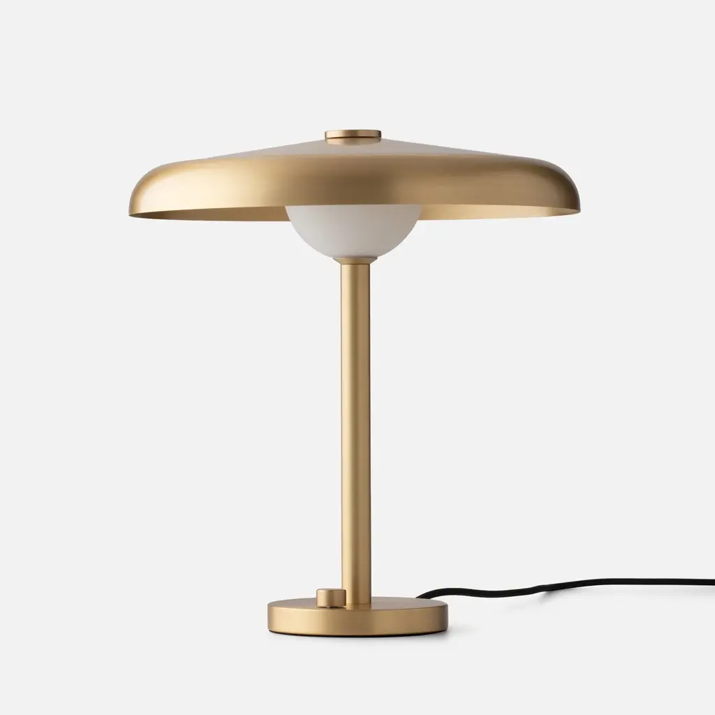 Utility meets elegance in the Caldera 15” Table Lamp, designed by local Portland studio FOLK. A low-profile metal shade and handblown glass diffuse and direct the light, while a brass base complements the look. Use the dimmer knob at the base to set just the right mood.