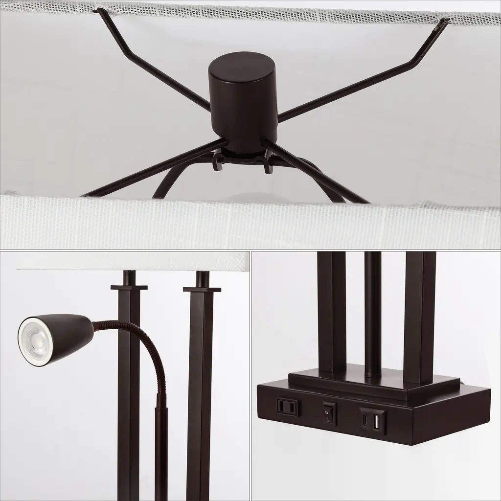 Callie 23.75" 2-Light Farmhouse Metal Led Table Lamp With Usb Charging Port, Adjustable Reading Light, By Jonathan Y - Oil Rubbed Bronze