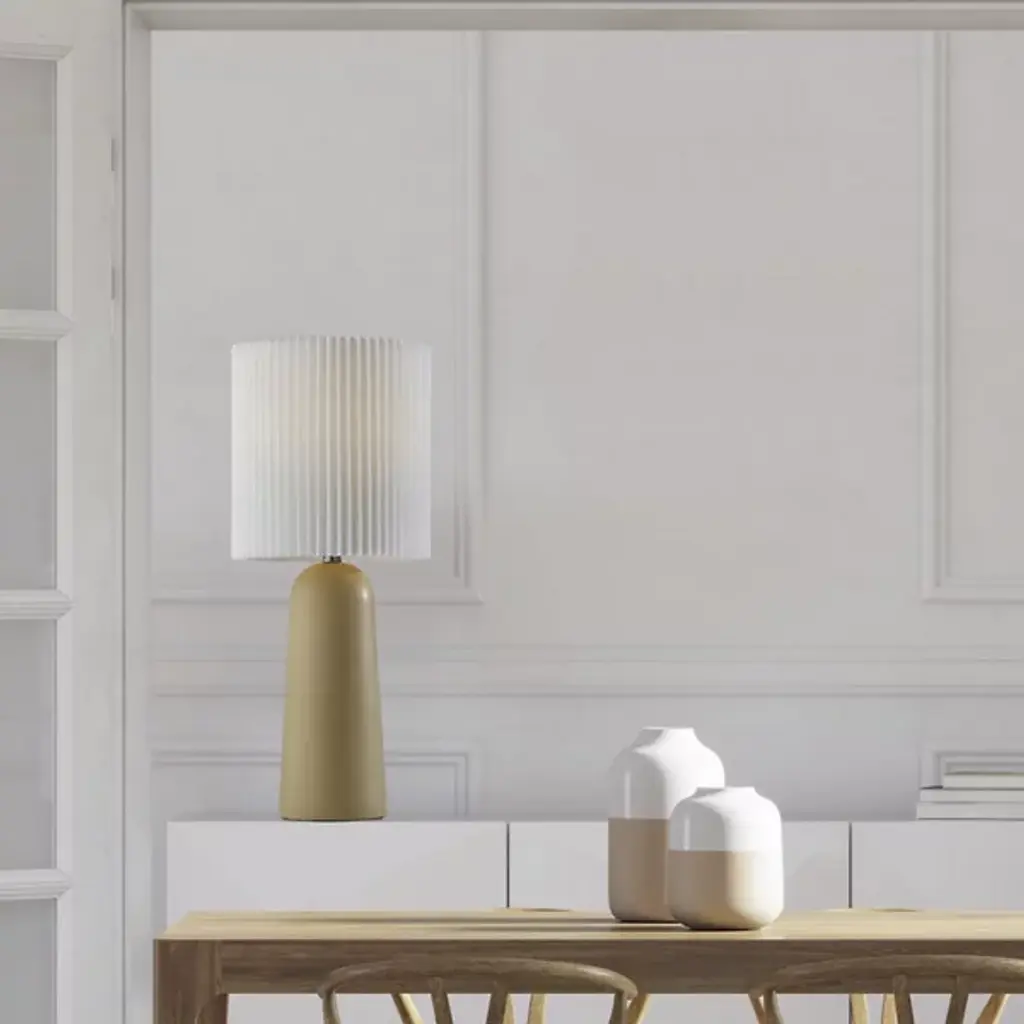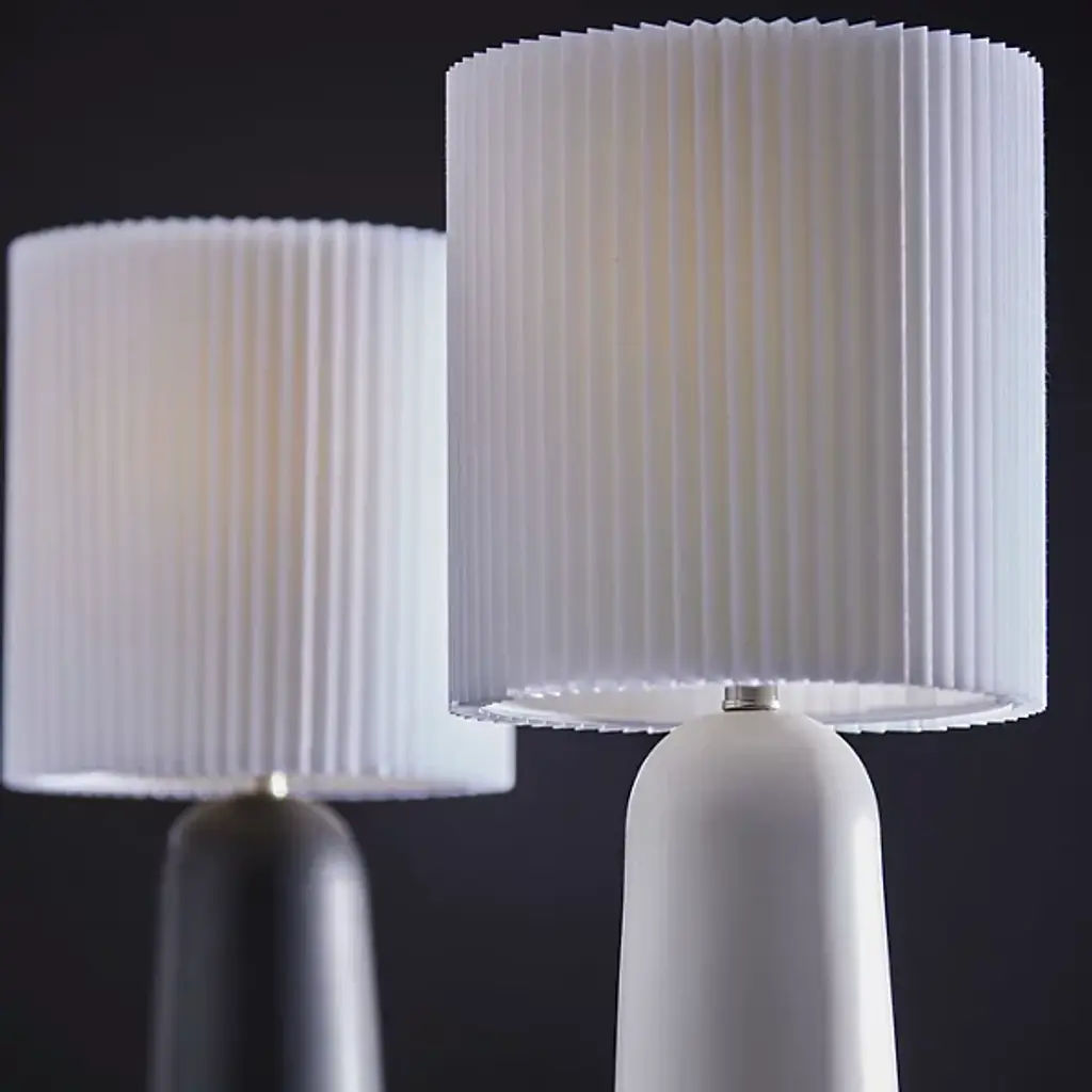 Less is more with the Callie Table Lamp by Adesso. With a casual and elegant design, Callie Table Lamp complements elegant, Scandinavian décor. The dome base features clean lines and a beautiful ceramic construction, while the pleated fabric drum shade adds an elegant design touch. Your lamp is easily operated by a rotary socket switch.
