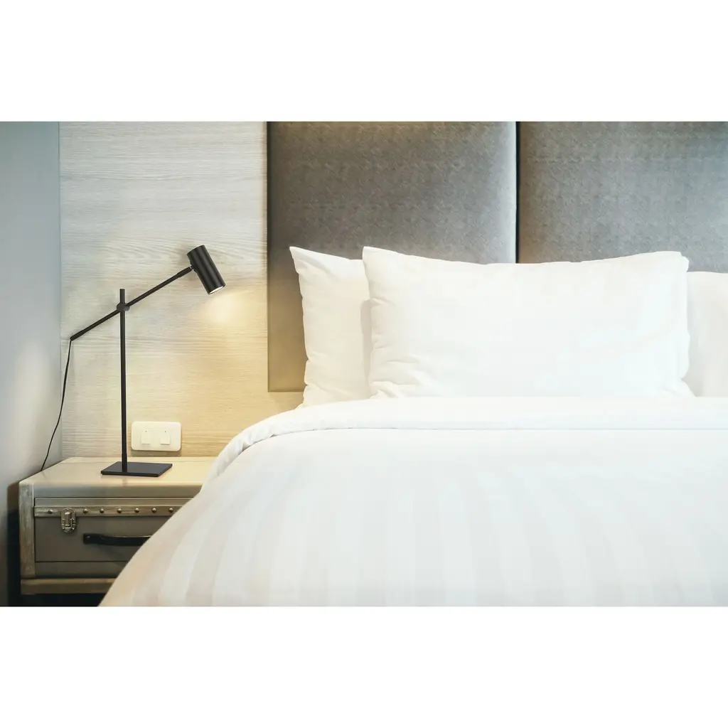 This contemporary table lamp with a cylindrical shade will illuminate your home office or living room. Serving as the ultimate task light, this fixture is constructed of steel in a matte black finish for a sleek and simplistic appeal.