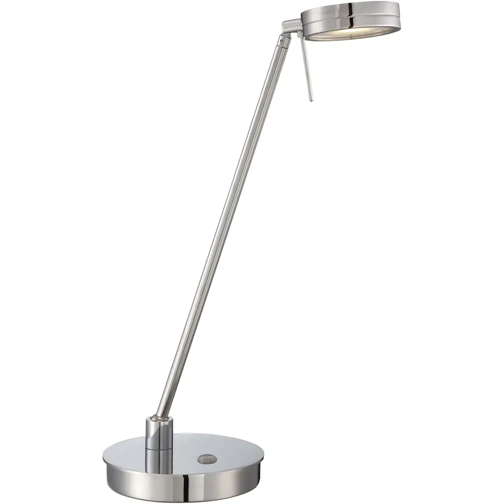 Accent your desk or night stand with this simple and energy-efficient LED desk lamp, this versatile Cambert Brush Silver table lamp offers general illumination as well as task lighting. A On/Off black switch and a convenient USB port in the base is perfect for charging smart phones or other electronic devices. The contemporary scheme and silver finish of this 1-light desk lamp will flawlessly bring a sensational look to the interior vibrancy of your dwelling. Complemented with a marvelous silver metal shade. The classic desk lamp is given an energy-efficient upgrade in the Cambert LED Drum Cone Desk Lamp. With a minimalistic style and long-lasting lighting, this brush silver accent desk lamp is perfect with a convenient adjustable neck moves up and down and rotates a full 360 degrees. Materials: Metal Finish: Brush SilverOn/Offf Switch on the base of the Lamp Comes with a Cylindrical Metal Shade that measures 5.5 In. DIA x 2.25 In. HMetal Shade is adjustable to 45 Degree Angle and Shade can be moved and adjustable sideways, too with ease Table Body measures 0.50 In. Dia Body Pole x 14 In. H Table Base measures 6 In. Dia x 1.25 In. H 4 Watt LED E12 Bulb (360 Lumens, 2700 K) is INCLUDED. Bulb Option: 1 pc 40W MaxType B (E12) Incandescent Bulb , CFL compatible 73 In. L Black Cord Assembly Instructions: FULLY ASSEMBLED. Need to plug in the lamp wo your wall socketWipe with a damp cloth for cleaning