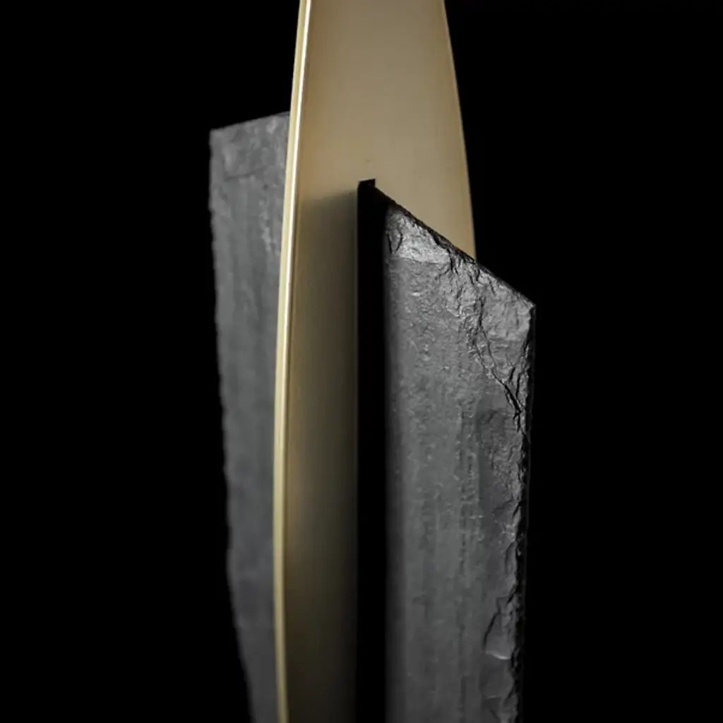 The natural materials that abound in Vermont inspired the elegantly rustic Cambrian Table Lamp by Hubbardton Forge. The core of the base is steel, with a sleek ellipsis adorning the otherwise slender stem. On either side, slabs of natural Vermont slate add one-of-the-kind texture and dimension to the overall design. A flared fabric drum shade visually complements the angularity of the base elements while also casting a broad wash of ambient light around a living room or home office.