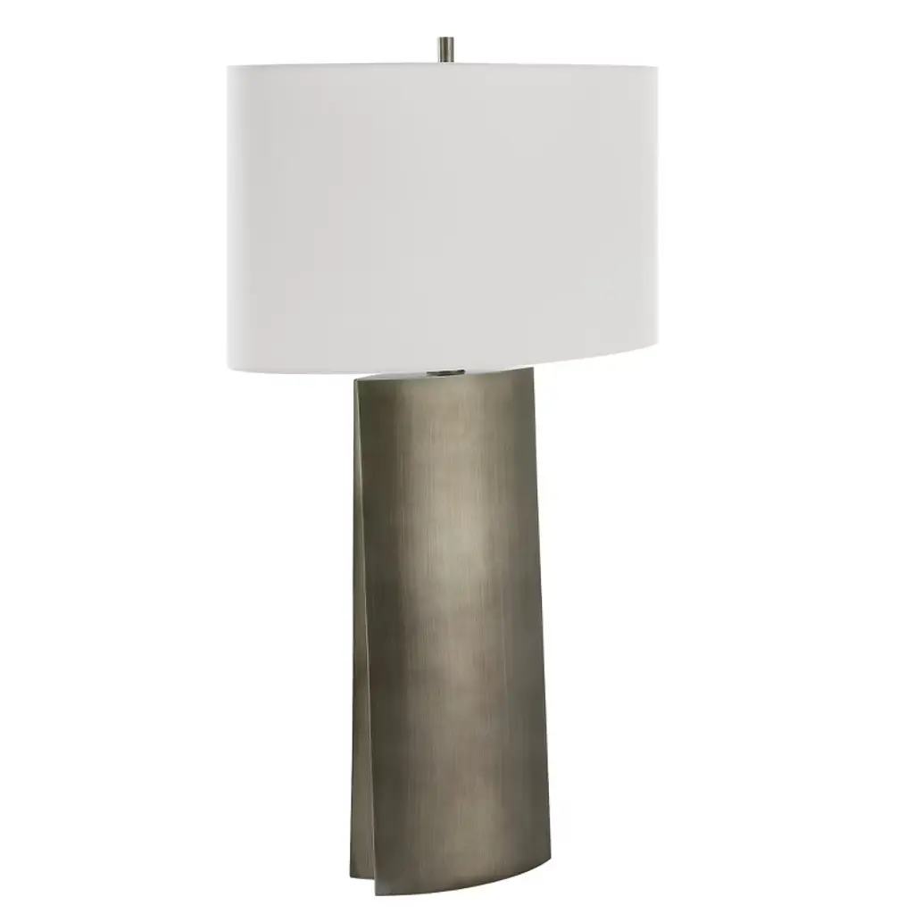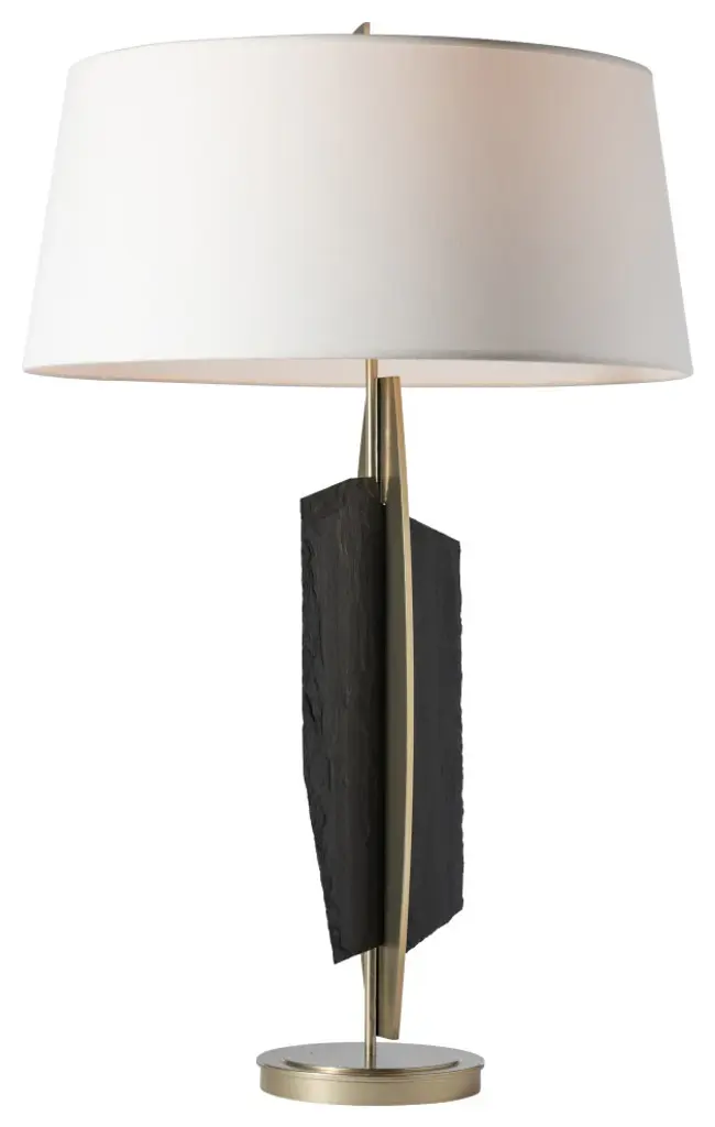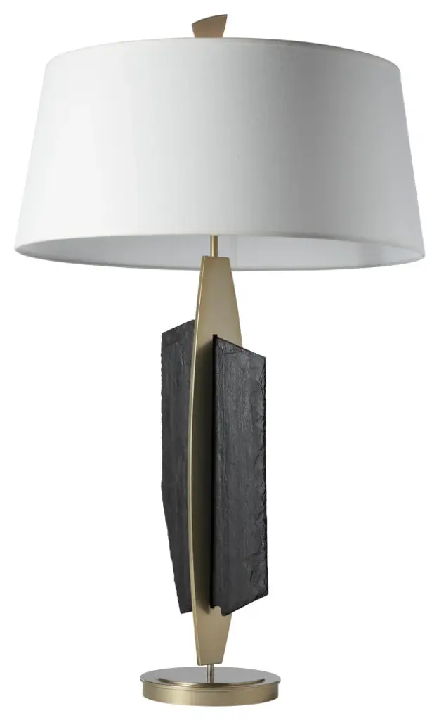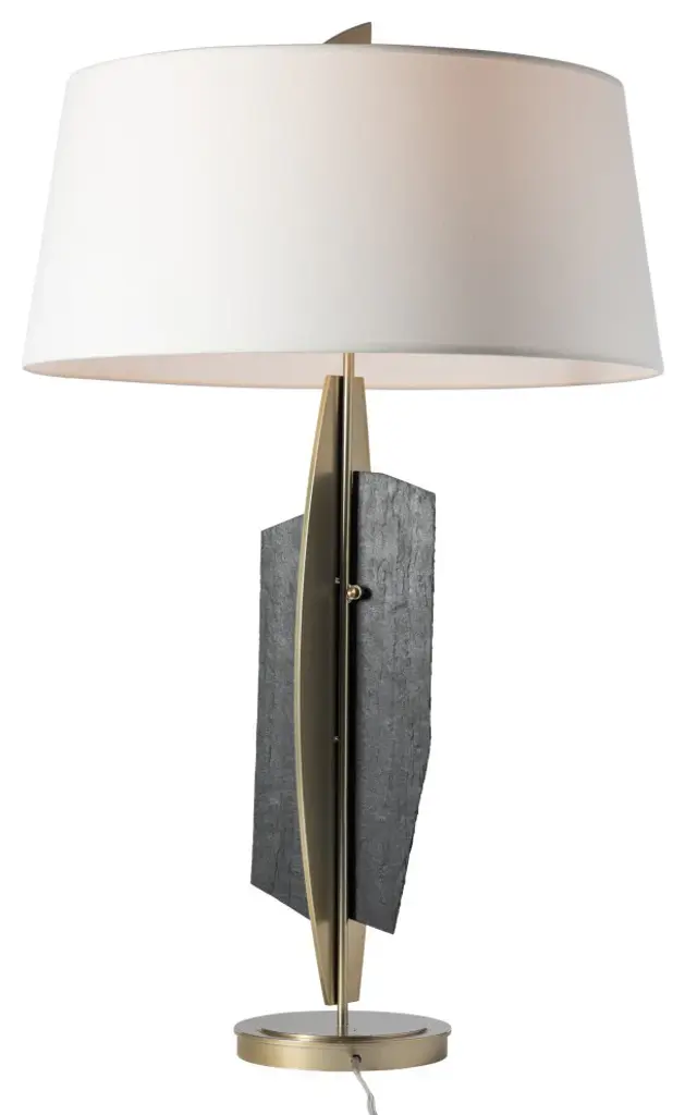 Cambrian Table Lamp, Modern Brass Finish, Slate, Natural Anna Shade