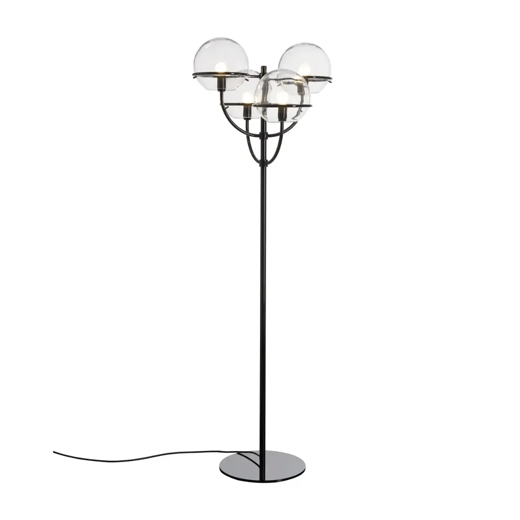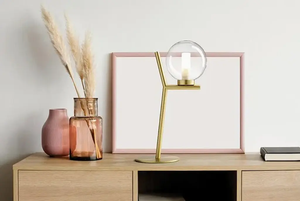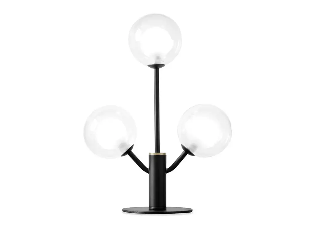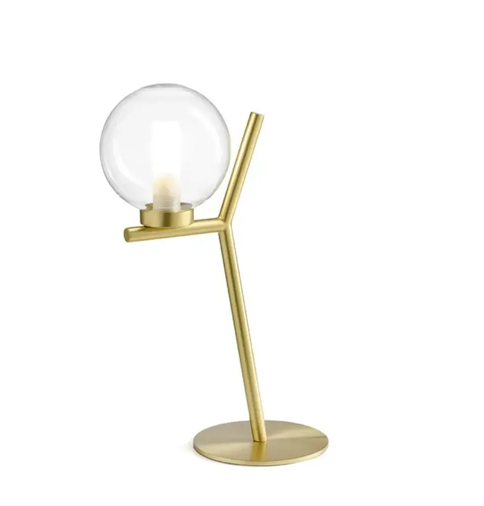 CAMELY is a table lamp with transparent borosilicate glass diffuser. Internal frosted borosilicate glass diffuser. Brushed gold metal ceiling cover. Brushed gold metal base. Compatible with 1 x dimmable G9 LED light bulb. Black 150 cm power supply cord. Source G9 LED DIMMABLE | Power 1 x max 10w