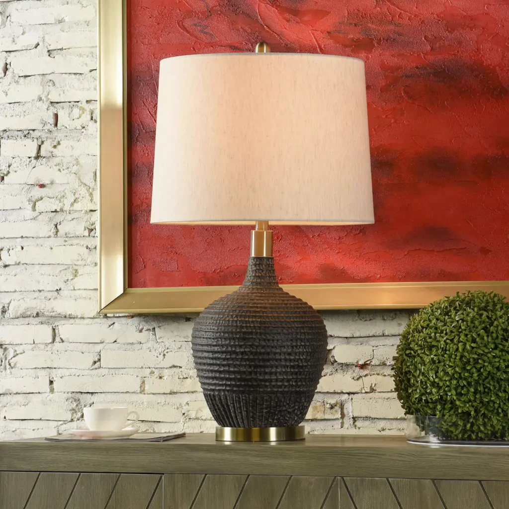 Cameron 30 Inch 100.00 Watt Black And Brown And Brass Table Lamp Portable Light