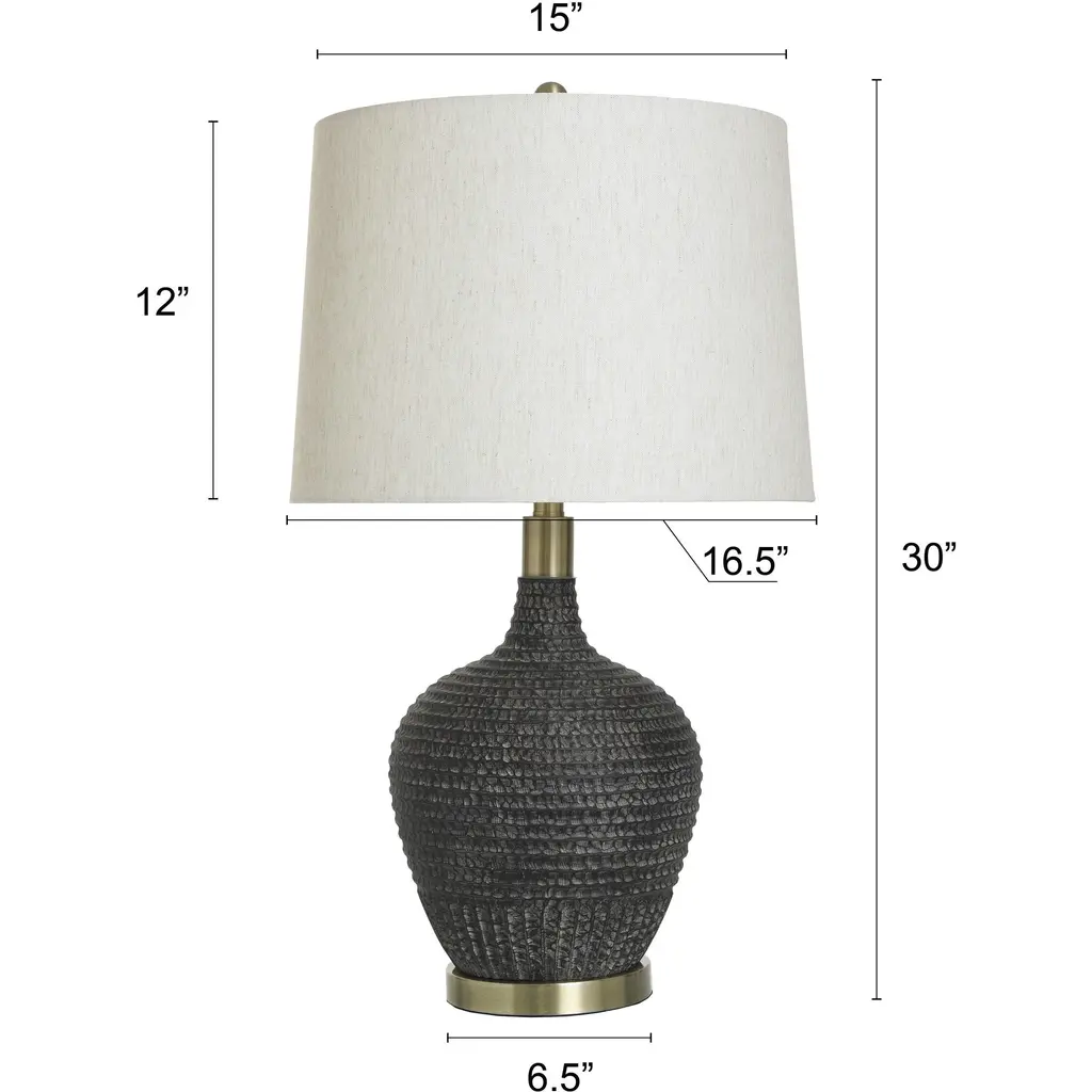 This table lamp is a perfect blend of vintage charm and modern aesthetics. Constructed from a mix of quality poly, fabric, and metal elements, this lamp boasts a pottery-style body that adds a touch of artistically inspired design to any room. Ideal for livening up a living room, bringing a touch of tranquility to your bedroom, or adding accent light to an office or entryway, this lamp caters to a wide range of décor themes.