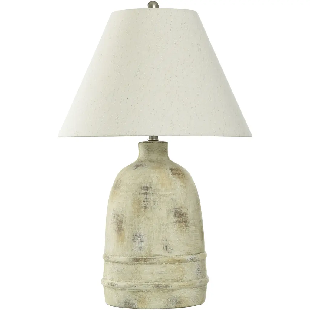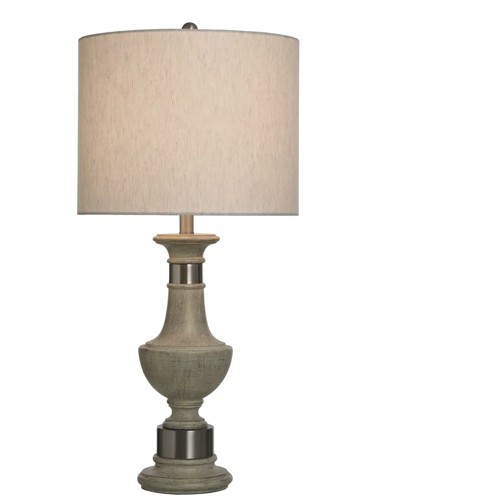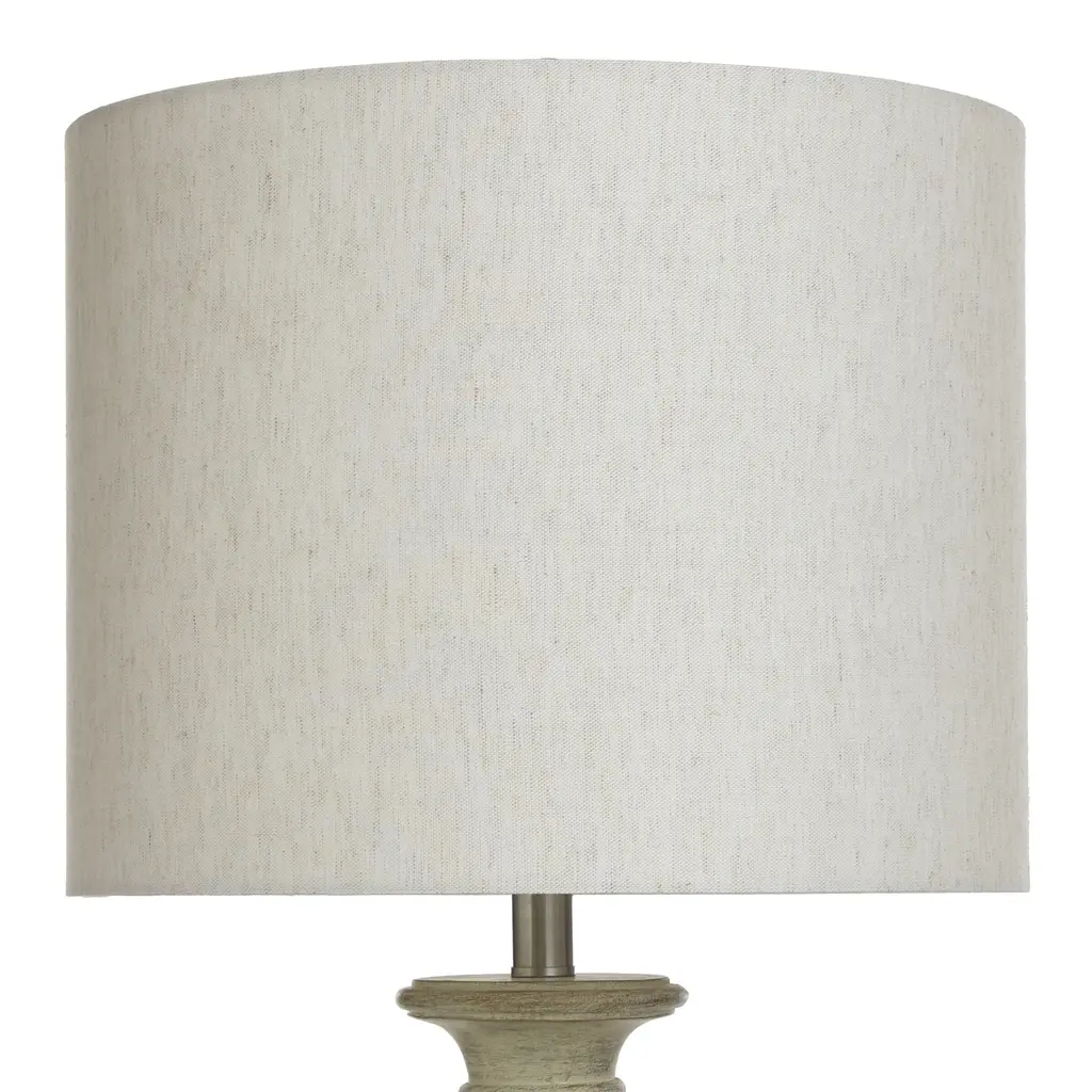 This beautiful table lamp made from a blend of poly, fabric, and metal, is perfect for adding a touch of elegance to your space. Designed with a unique touch, each piece stands out with a distinctive look, personalizing your favorite spaces such as your living room, bedroom, or office. The metal structure provides durability while the fabric drum shade disperses light evenly, creating a warm and inviting atmosphere.