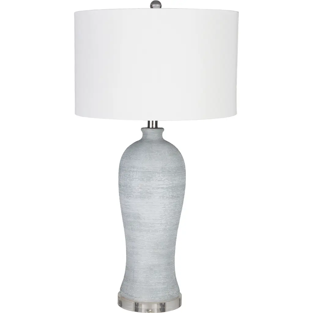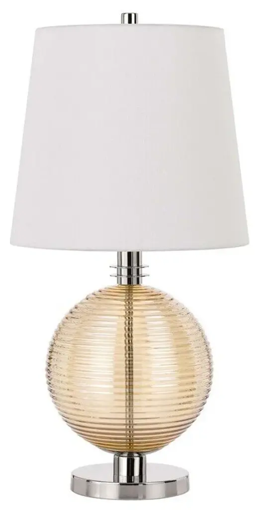 This table lamp combines glass, fabric, and metal to create a stunning piece offering a balance between classic and modern. Place this in your living room for a touch of charm or in your office for a dash of elegance. Its unique design makes it a versatile addition to any styled bedroom or a sophisticated entryway.