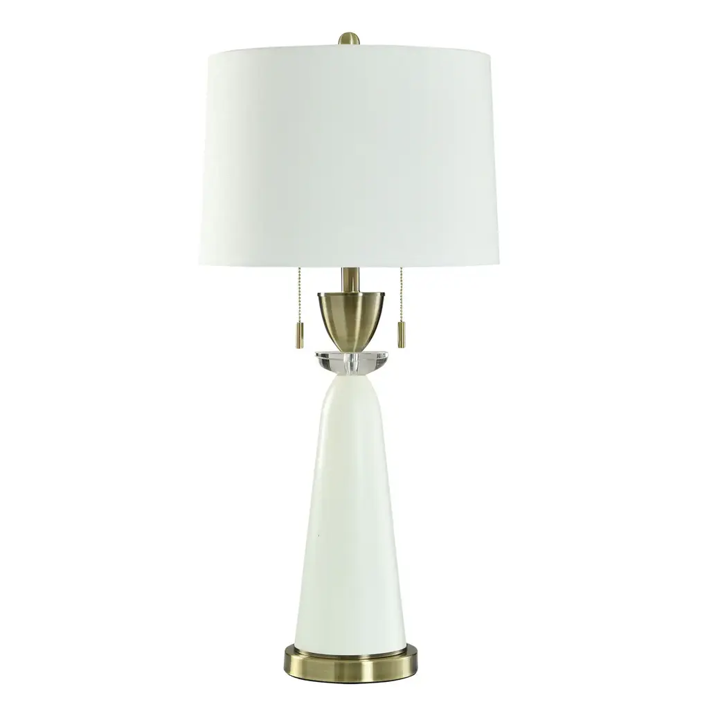 This stylish table lamp is perfect for both modern and traditional homes. Crafted from high-quality metal, it's paired with a fabric shade to create a cozy, ambient light. Place this lamp in your living room, bedroom, or office to introduce a stylish focal point to your space, or use it in the entryway to make a grand impression.