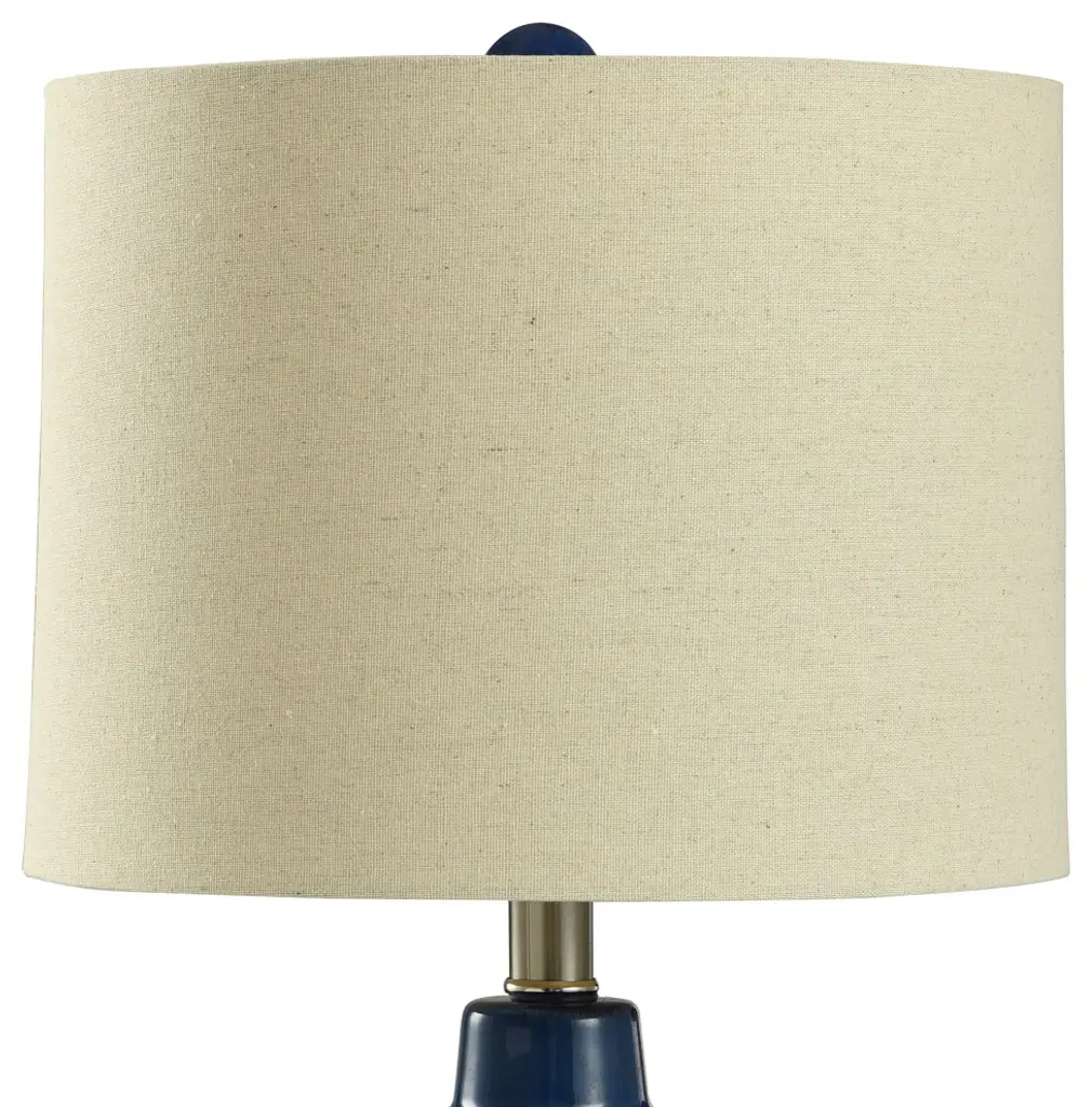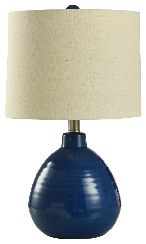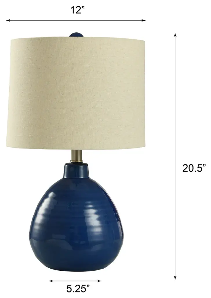 This beautiful ceramic table lamp will be the perfect accent in any family room. It comes with a standard rotary on/off switch, but even when it is not illuminated, you will enjoy the aesthetic it brings to the room. Features: Slight color distressing on base, silver finial, perfect for a kids bedroom, playroom or even a coastal living roomA handpainted finish means each piece is unique, with possible slight variations. No two lamps are exactly alike.Finish: Sailor Navy BlueShade Finish: BeigeMaterial: Ceramic Shade Material: Hardback LinenLength: 12 inchesWidth: 12 inchesHeight: 21.5 inchesVoltage: 120VWattage: 60Safety Rating: Dry Location - This item is rated for dry locations, meaning it can be used in an indoor area that is not normally subject to dampness. May include a location subject to temporary dampness provided ventilation is adequate to prevent any accumulation of moisture such as the bathroomBulb(s) Included: NoBulb Type: IncandescentNumber of Bulbs: 1Due to lighting and monitor differences, actual colors and finishes may vary slightly from what appears online.