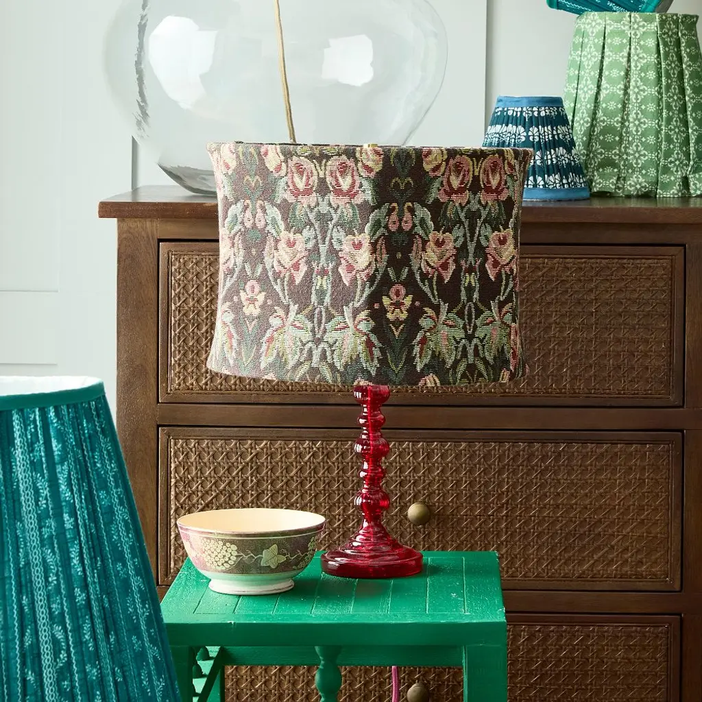 Deep-pink and dreamy. Inspired by vintage cranberry glass candlesticks, this table lamp is made with mouth-blown recycled glass and recycled aluminum hardware for a design that’s best in glass.