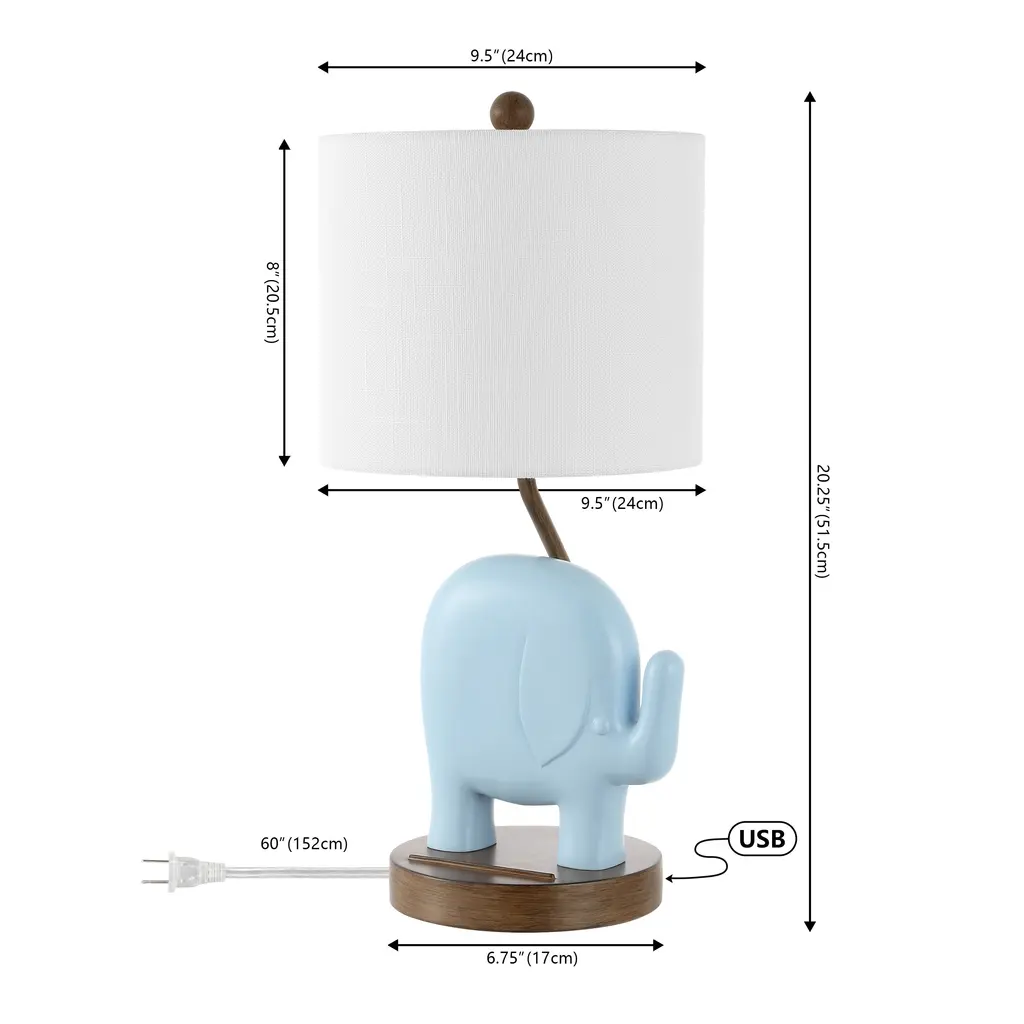 Kids of all ages love our elephant shaped novelty style lamp. Made of a painted resin base and complemented by a soft linen shade, this lamp adds some bohemian and minimalist flare to any space. This lamp is the perfect addition to any child's bedroom or playroom.Features:Dimensions:About us:You see a lamp.We see a decorative work of art.A perfectly curved shade casts a dramatic shadow on a floor. Compatible with LED lightbulbs: as easy on the environment as they are on the eyes. The JONATHAN Y Lighting collection considers every detail from impeccably sourced materials to designer styling. And our prices are so attractive, we've transformed a functional necessity into a fashion accessory.JONATHAN Y Lighting - a fashion revolution in home decor.