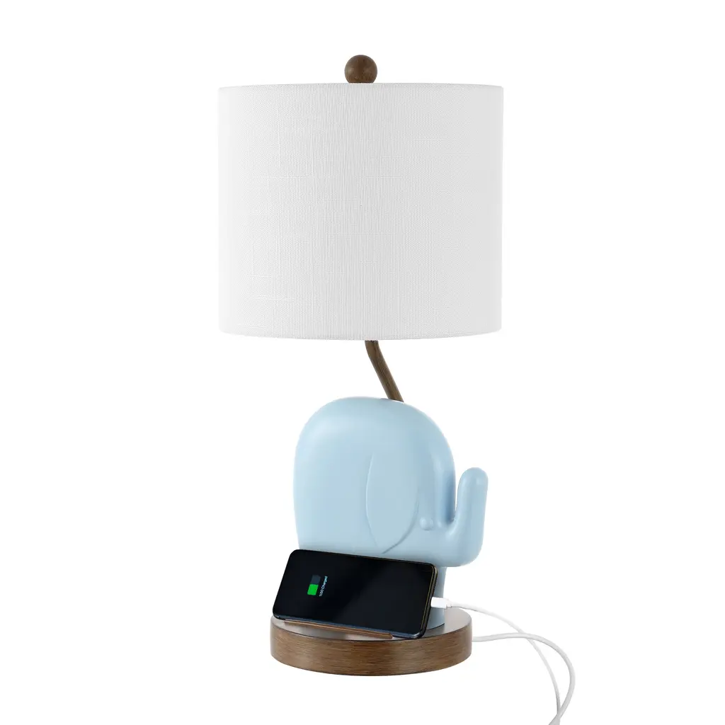 Campana 20.25" Bohemian Designer Iron/resin Elephant Led Kids Table Lamp With Phone Stand And Usb Charging Port, By Jonathan Y - Blue