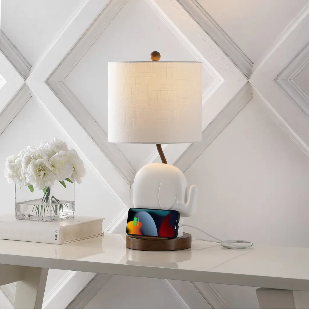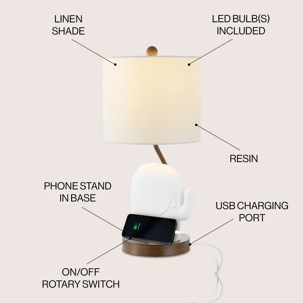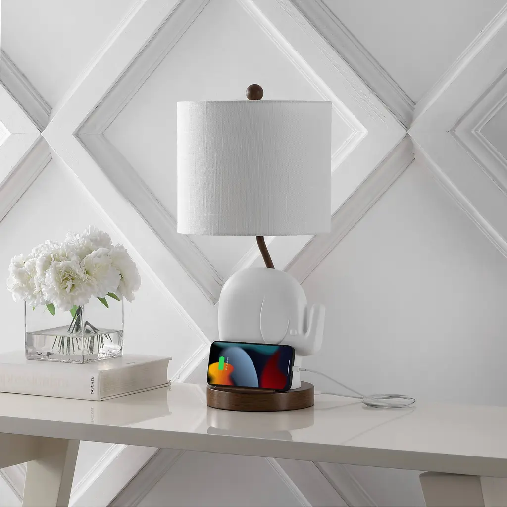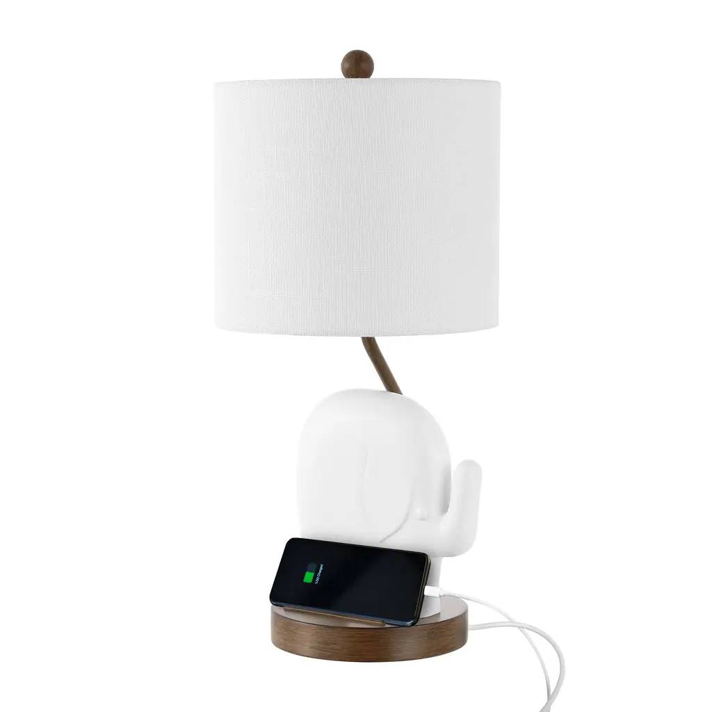 Campana 20.25" Bohemian Designer Iron/resin Elephant Led Kids Table Lamp With Phone Stand And Usb Charging Port, By Jonathan Y - White