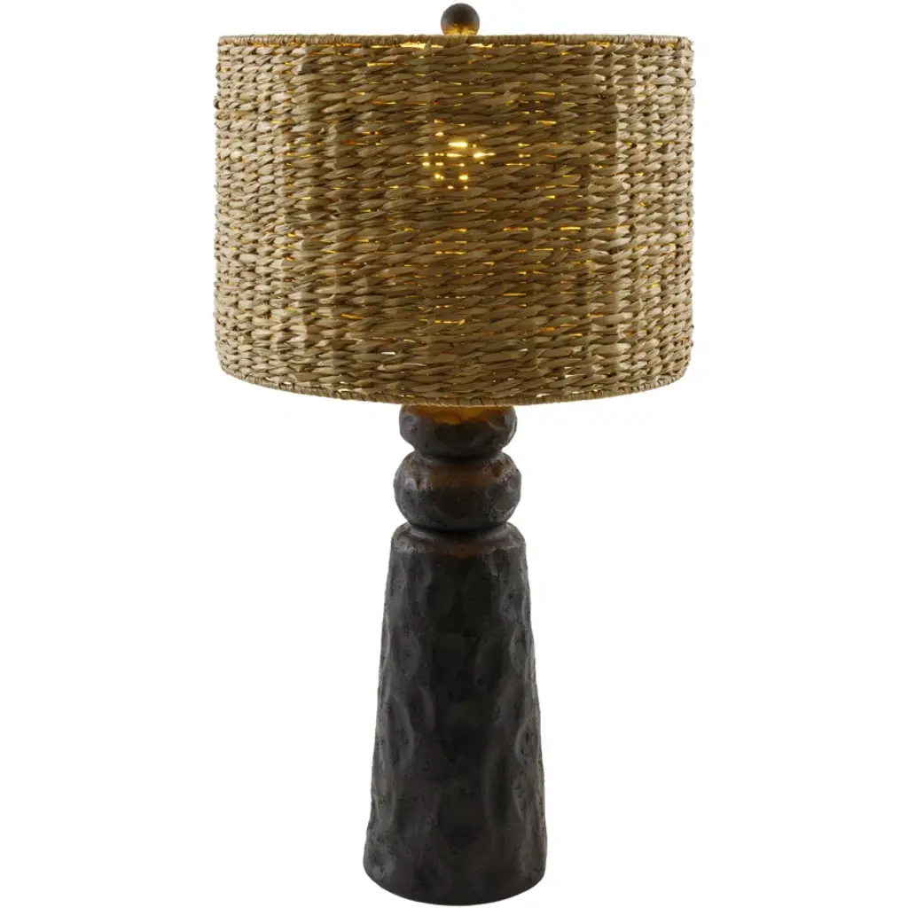 Introducing a table lamp that brings dueling textures and breezy charm to any room in your home. The base is made from resin in a polished neutral tone, and the hammered surface adds a subtle touch of dimension to the overall look. A ball finial sits on top just above the drum shade woven from seagrass. Nestled inside is a single 100W max bulb, which is sold separately and controlled with the help of a handy 3-way switch. Ideal for end tables and entryway consoles.