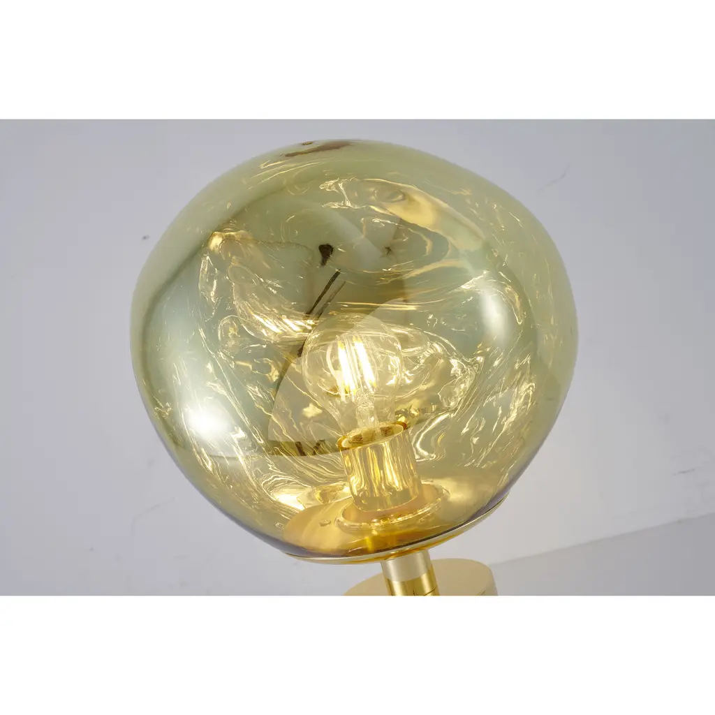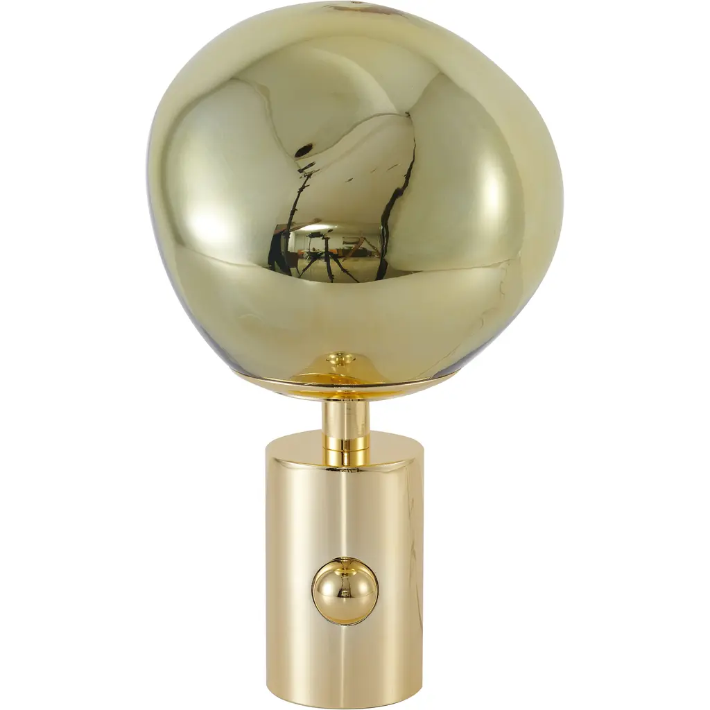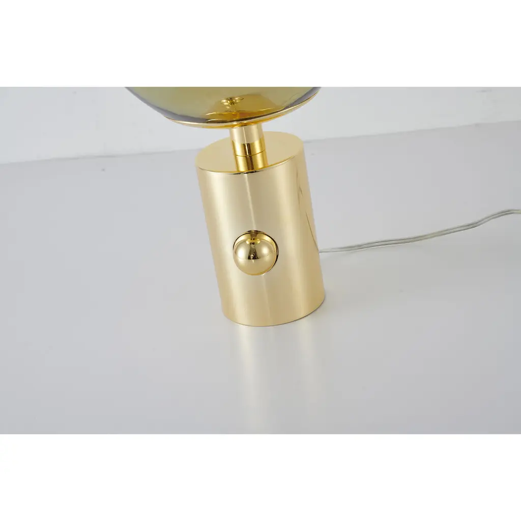 This table lamp is a luxurious and eye-catching table lamp that combines transitional design with a touch of elegance. The gold orb-shaped shade is made of acrylic, giving it a sleek and sophisticated appearance. The lamp's metal base is sturdy and stable, making it perfect for placing on a bedside table, desk, or coffee table. The lamp takes a standard E26 bulb (Bulbs Not Included) and has a maximum wattage of 60W, making it easy to replace and adjust to your desired level of brightness. With a diameter of 9.8 inches and a height of 16.9 inches, this lamp is compact and space-efficient, making it a great addition to any room such as living room, bedroom, or reading room.