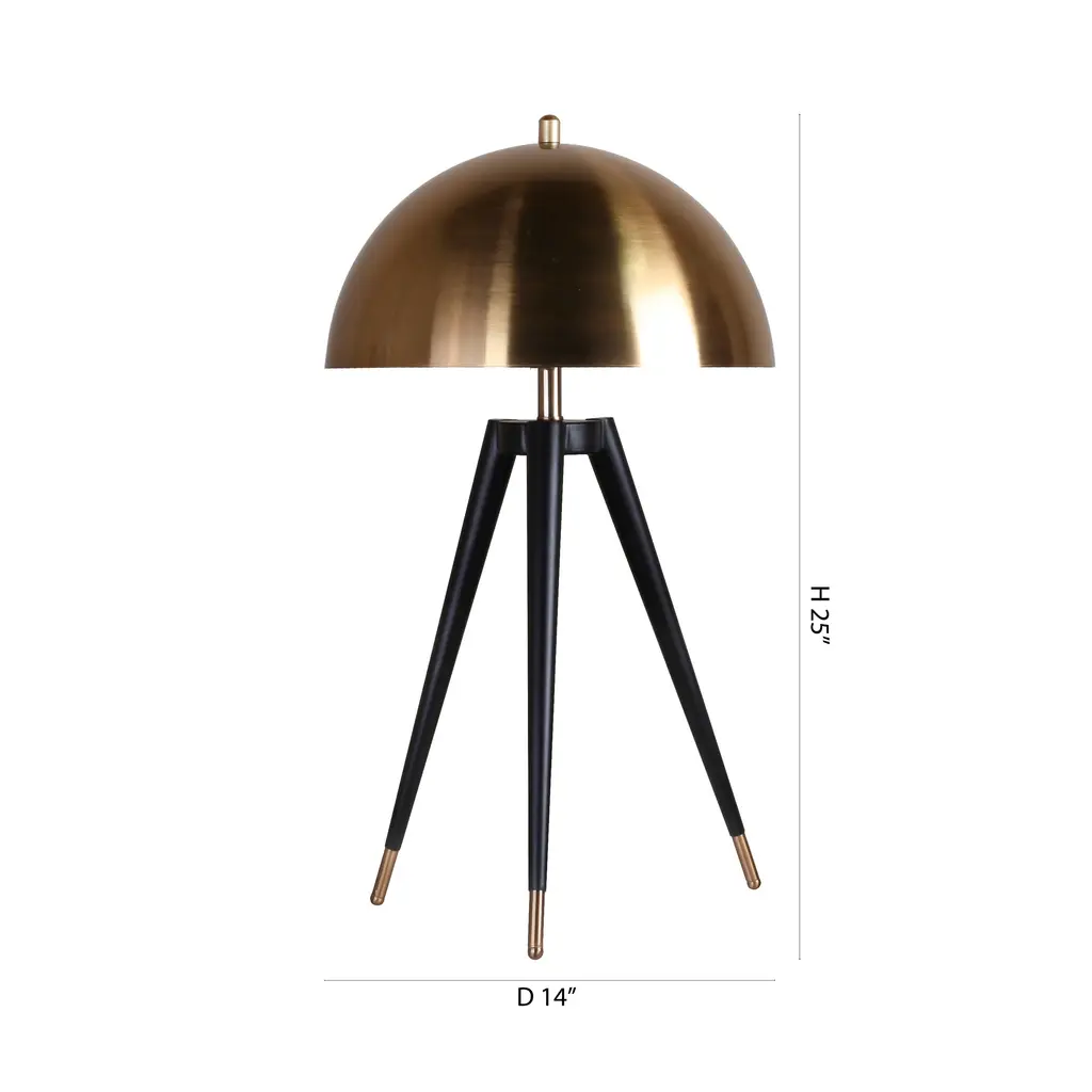 This traditional table lamp is a sleek and sophisticated lighting fixture. With a diameter of 14 inches and a height of 25 inches, it's a compact and stylish piece that can add a touch of elegance to any room. The black frame provides a modern and sleek look, while the gold metal lampshade adds a touch of luxury and sophistication. The fixture is designed to accommodate a 100W bulb (Bulbs Not Included), and its 1xE26 base ensures a secure and easy installation. Overall, this table lamp is perfect for those who want to add a touch of modern style and sophistication to bedroom, living room, or reading room, and its compact size makes it ideal for smaller spaces or corners.