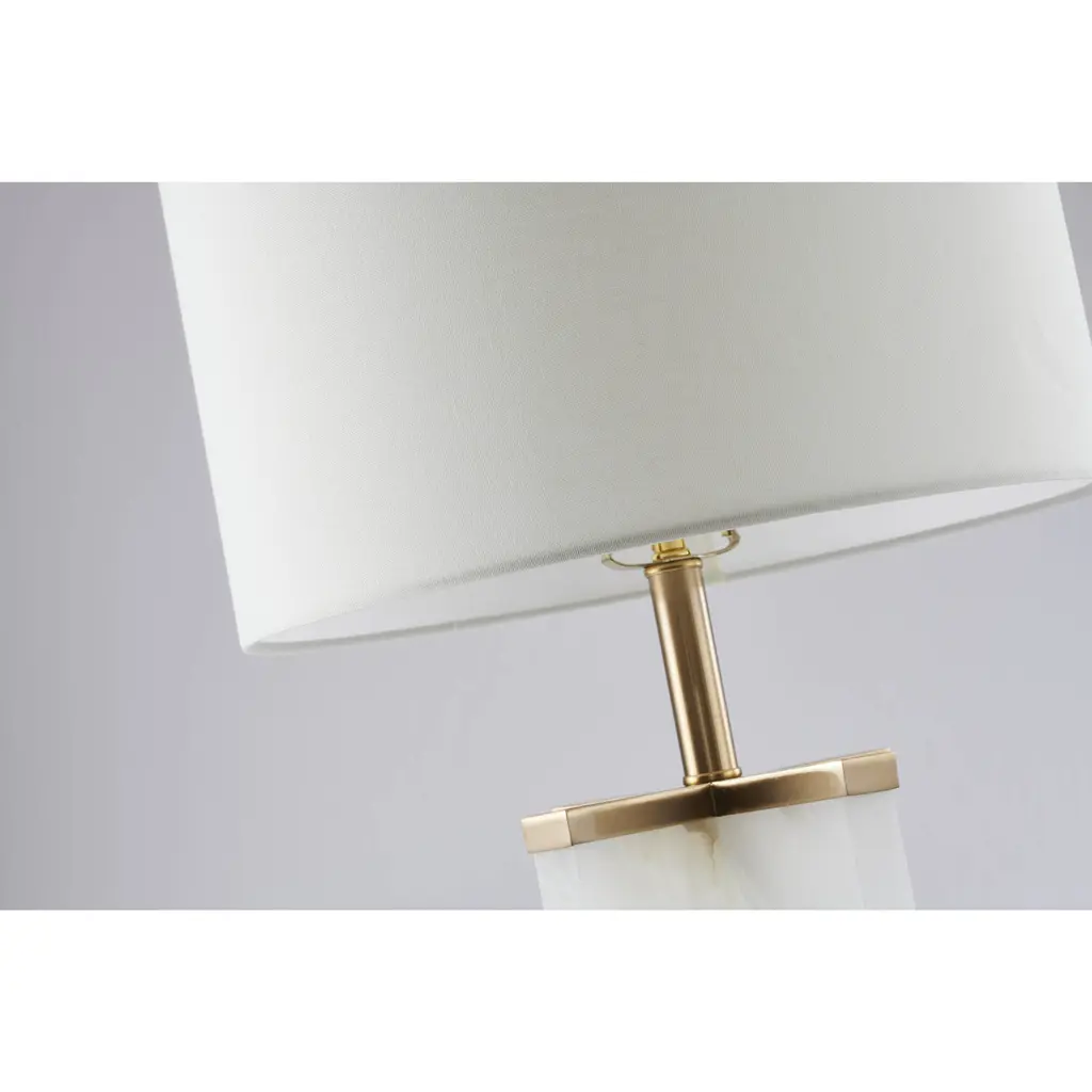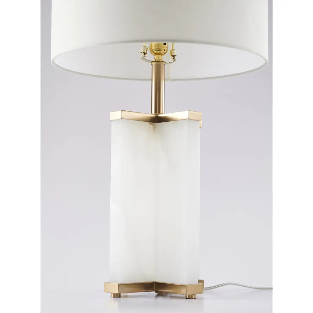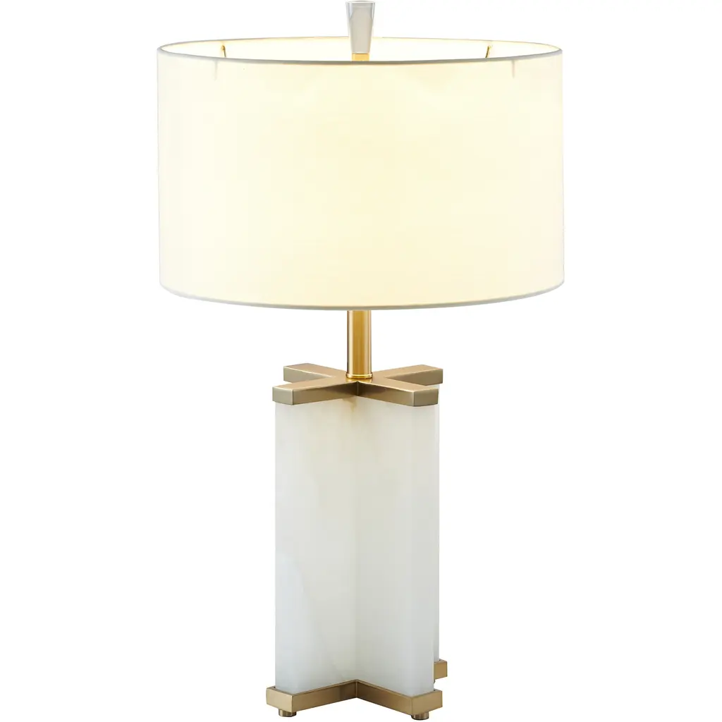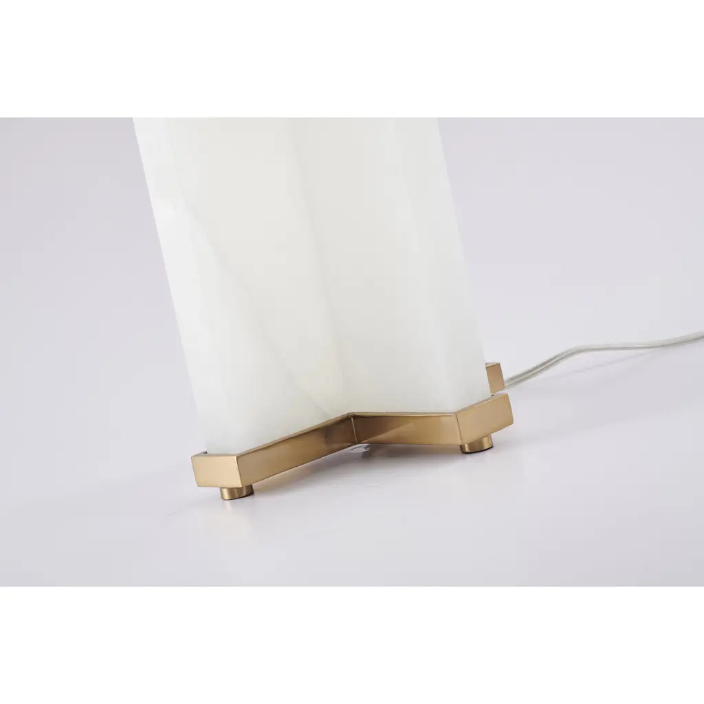 This traditional table lamp is a stunning and elegant lighting fixture. With a diameter of 15.7 inches and a height of 26.77 inches, it's a substantial piece that can add a touch of sophistication to any room. The combination of white alabaster stone and gold frame creates a unique and refined look, making it a great addition to any modern or contemporary space. The fixture is designed to accommodate a 60W bulb (Bulbs Not Included), and its 1xE26 base ensures a secure and easy installation. Overall, this table lamp is perfect for those who want to add a touch of elegance and sophistication to bedroom, living room, or reading room, and its unique design is sure to be a conversation starter.