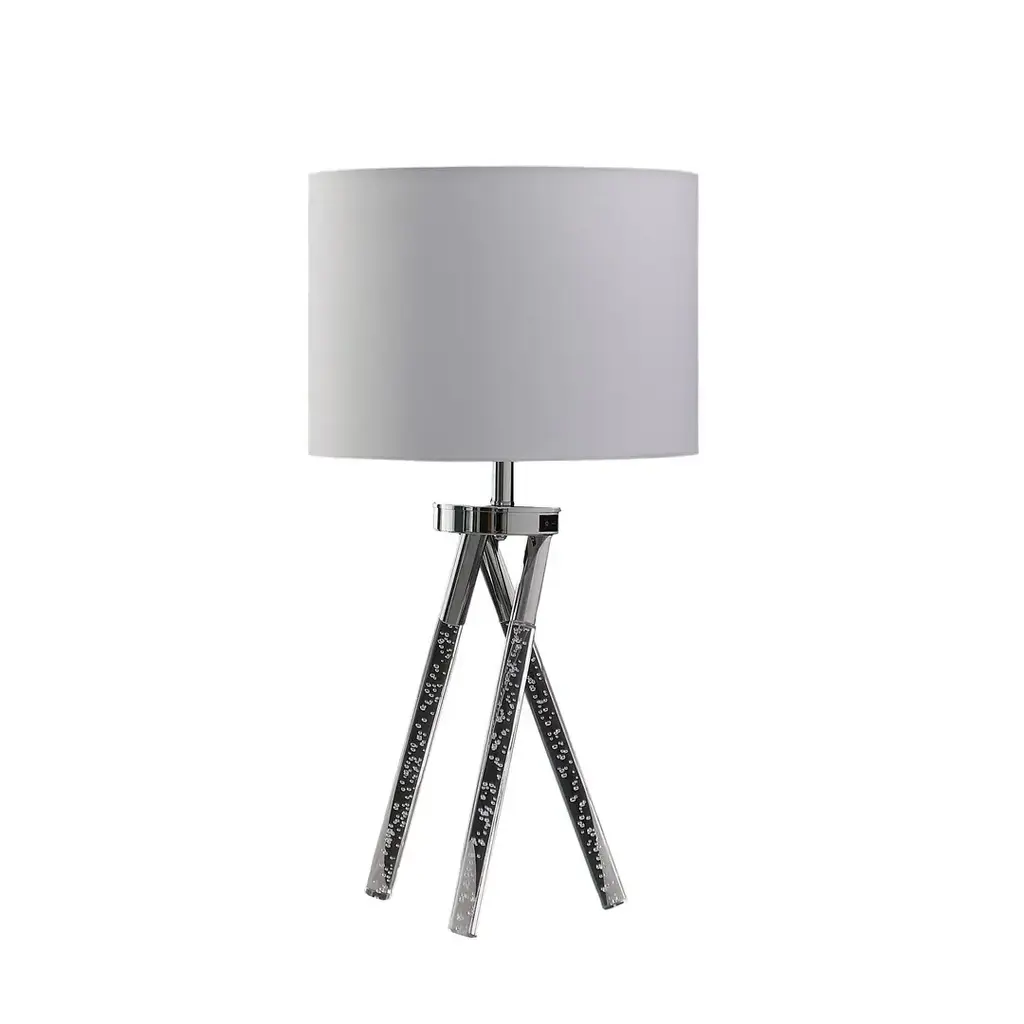 This transitional table lamp is a stunning piece that adds a touch of modern elegance to any room. The lamp's base is crafted from clear acrylic, giving it a sleek and transparent appearance that allows the metal accents to shine through. The metal accents and frame add a touch of sophistication and glamour, with a light beige shade that provides a warm and inviting glow. The lamp's shade is made of linen, giving it a soft and natural texture that adds a sense of warmth and coziness to the space such as living room, bedroom, or reading room. The lamp stands at an impressive 30.5 inches tall, making it a statement piece that demands attention.