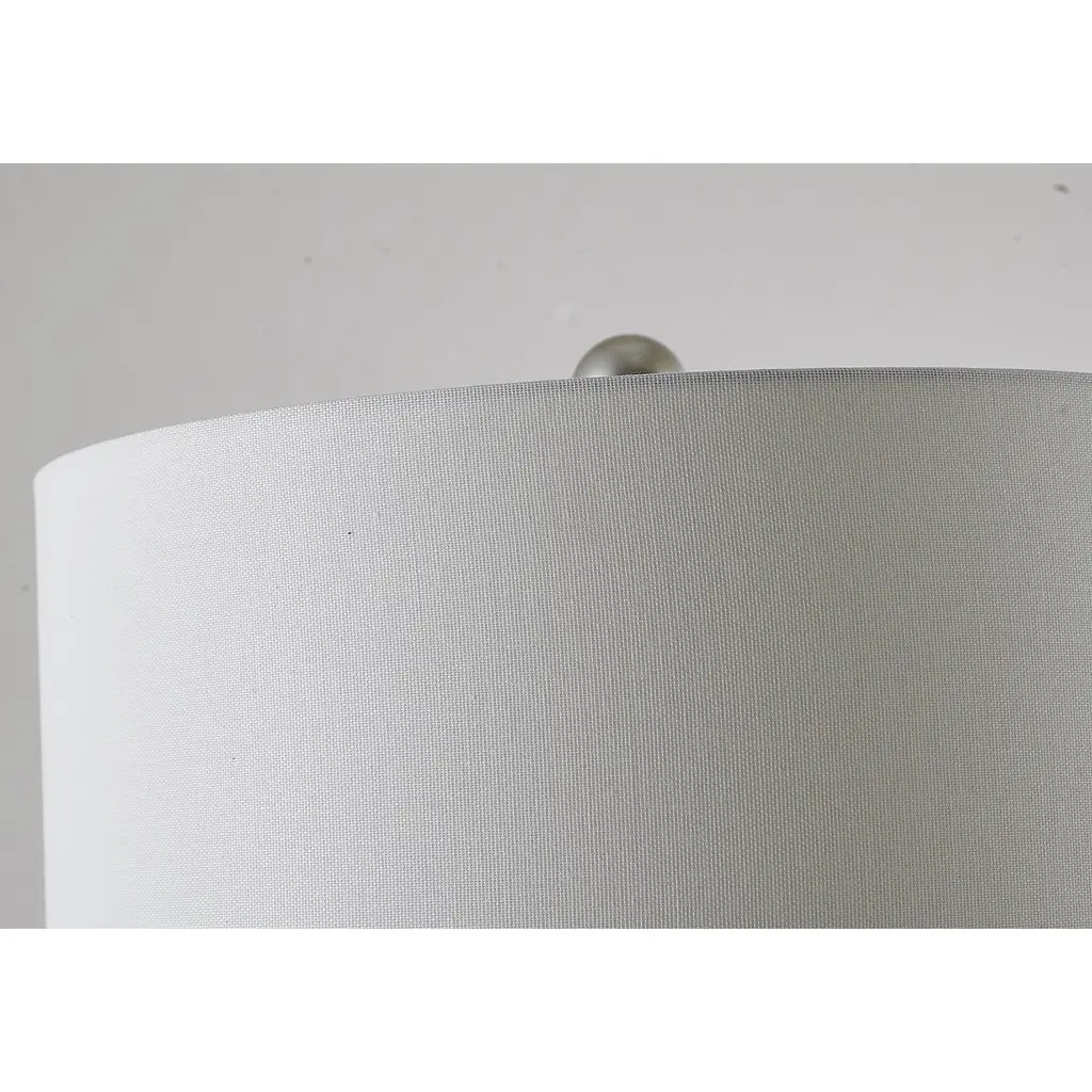 This traditional table lamp is a stunning and modern lighting fixture. With a diameter of 14 inches and a height of 34 inches, it's a substantial piece that can add a touch of sophistication and glamour to any room. The silver foiled resin body provides a sleek and metallic look, while the white linen fabric shade adds a soft and calming touch. The fixture is designed to accommodate a 100W bulb (Bulbs Not Included), and its 1xE26 base ensures a secure and easy installation. Overall, this table lamp is perfect for those who want to add a touch of modern style and elegance to bedroom, living room, or reading room, and its unique design is sure to be a showstopper.