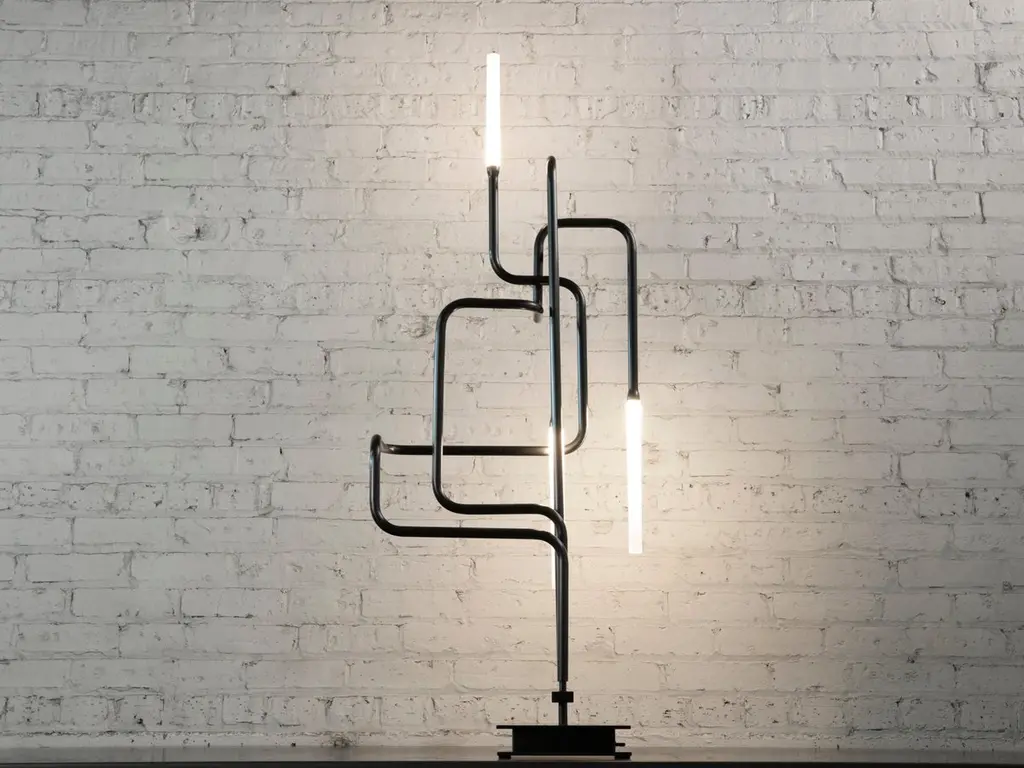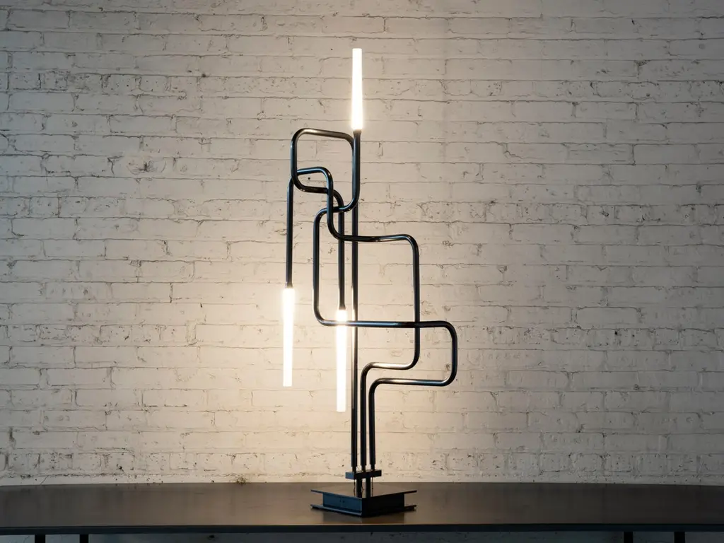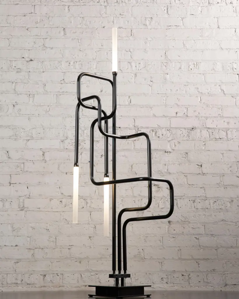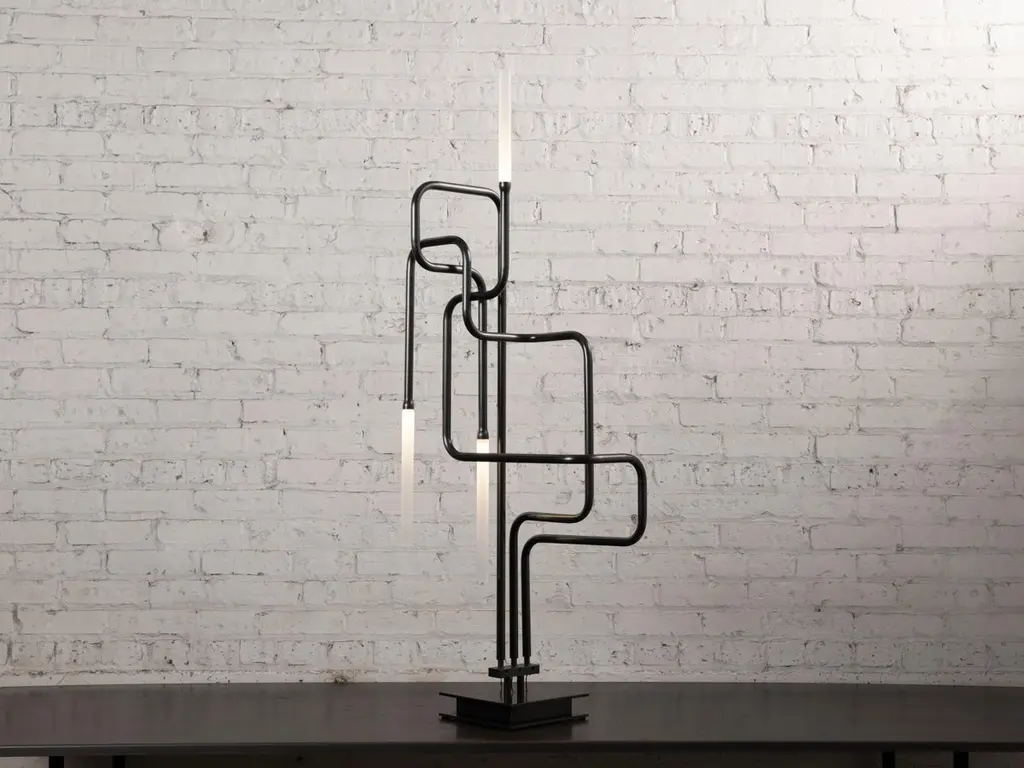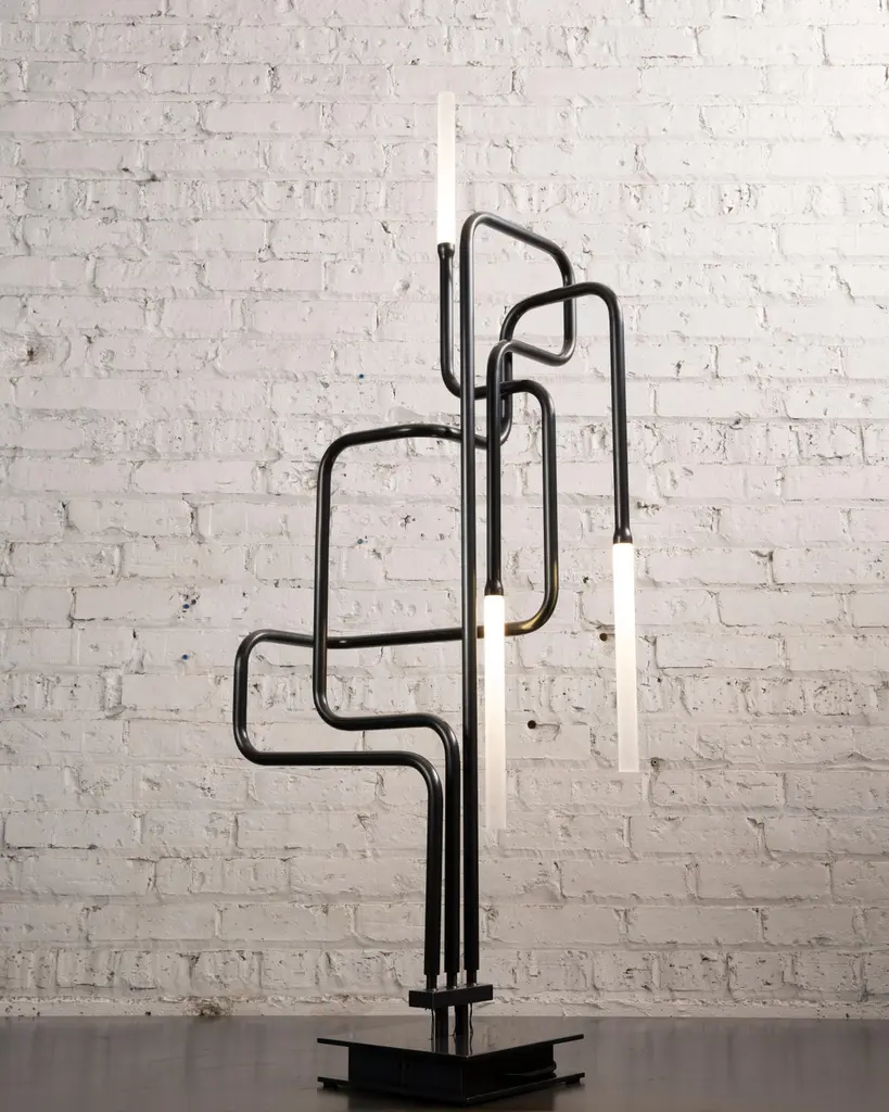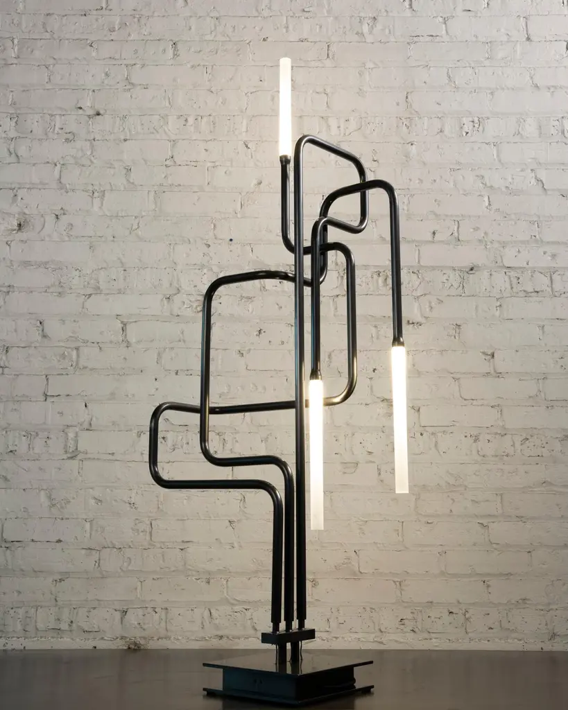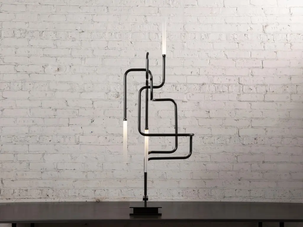 Canal Table Lamp by Gentner DesignDimensions: D 33 x W 50.8 x H 137 cmMaterials: darkened brassAll our lamps can be wired according to each country. If sold to the USA it will be wired for the USA for instance.Gentner DesignRooted in a language of sculpture, character defining details, and world renowned craftsmanship, the work is found at the crossroads of design and art.Established in 2011, the namesake furniture label is a rare combination of aesthetic dexterity and mastery of craft resulting in furniture and objects that are expressive, formal, and transcend materiality.The collection is based in metal and incorporates only natural materials such as leather, wood, and glass in unique ways, challenging our assumptions.Christopher GentnerChristopher Gentner, with a BFA in metalsmithing from the Cleveland Institute of Art and apprenticeships under sculptors and jewelers, together with dedication to craft, quickly developed his reputation nationally as a foremost authority of metal fabrication and furniture.One of his crowning achievements was the re-creation and fabrication of the Frank Lloyd Wright Robie House gates.These unique experiences are the foundation of his design philosophy which he employs in his own line of furniture, lighting, and objects.