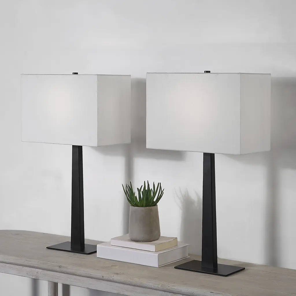 Proving minimal designs can sometimes have the largest impact, this set of table table lamps completes the modern interior without overpowering it. Showcasing strong angles and an artistic quality, these designs hold serene energy that then extends to their setting. Thanks to their versatile structure, these table table lamps can be set on bedside tables, entryway benches, living room side tables and more.