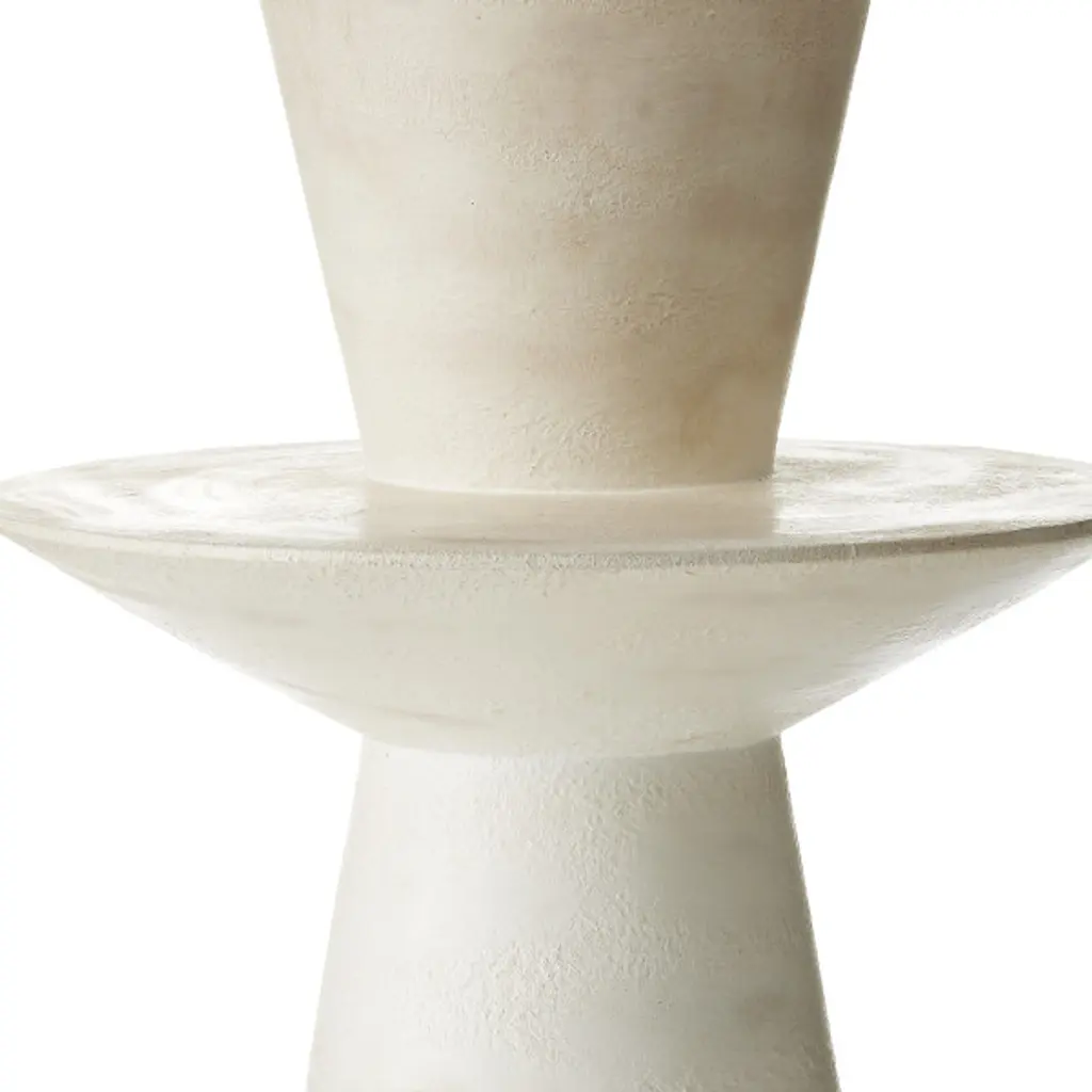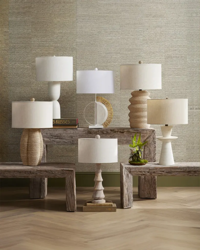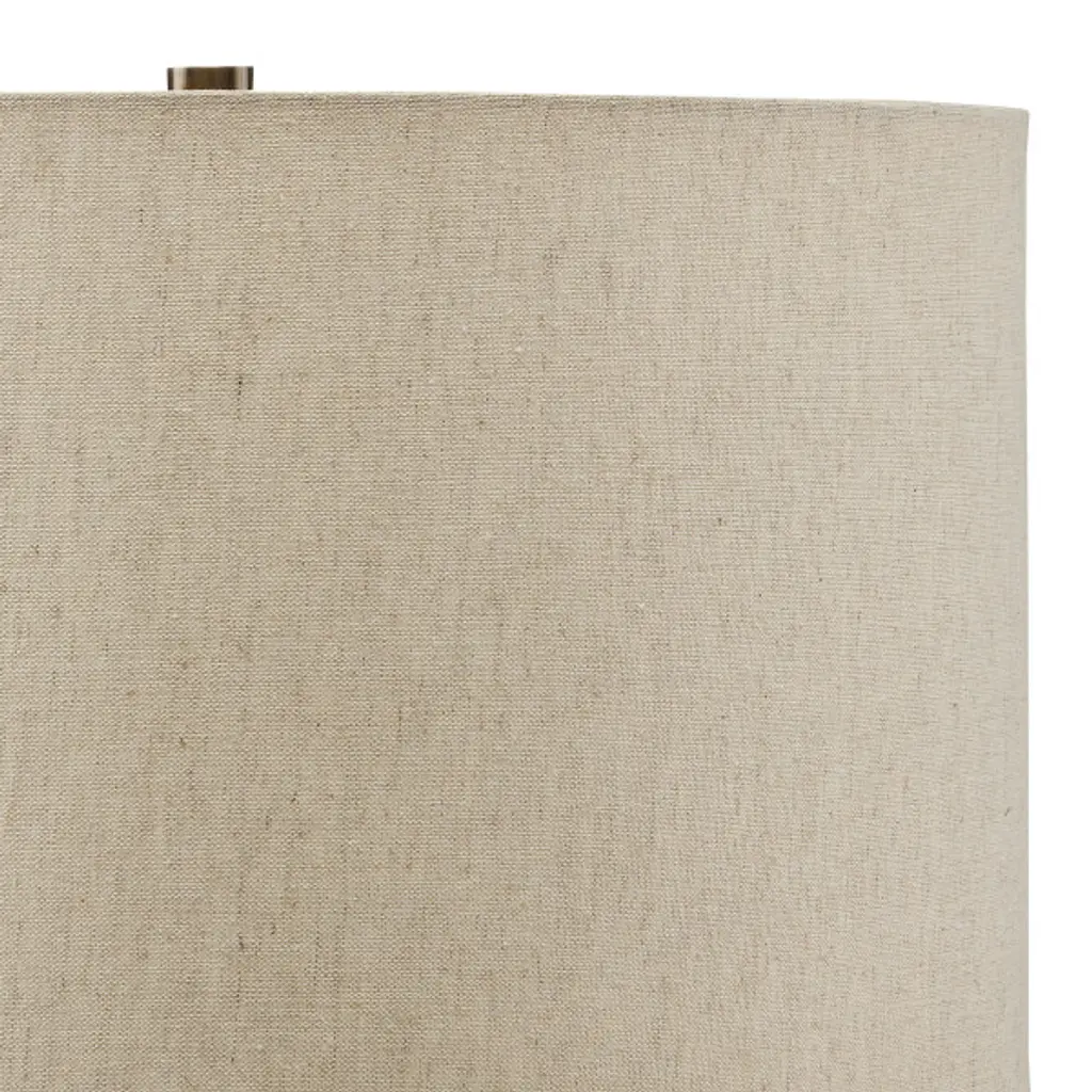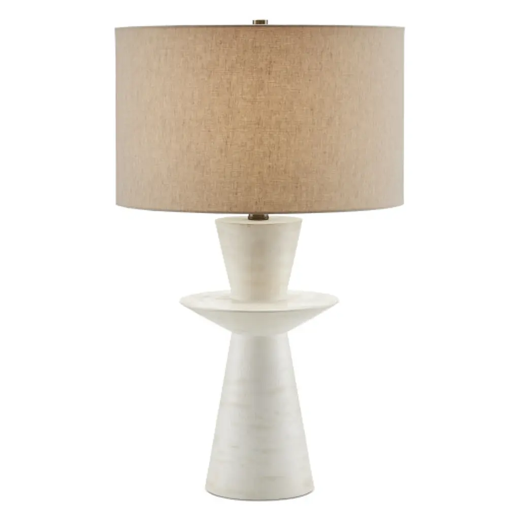 Designed by Tom Caldwell, the Cantata Table Lamp features a beautifully distressed lacquered finish that adds a subtle hint of texture to its artisanal wooden body. The modern shape is complemented by a linen shade, enhancing the darker tones of the lamp's fluted design. An antique-brass button finial secures the shade, completing this elegant piece.