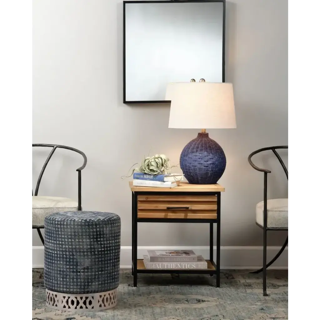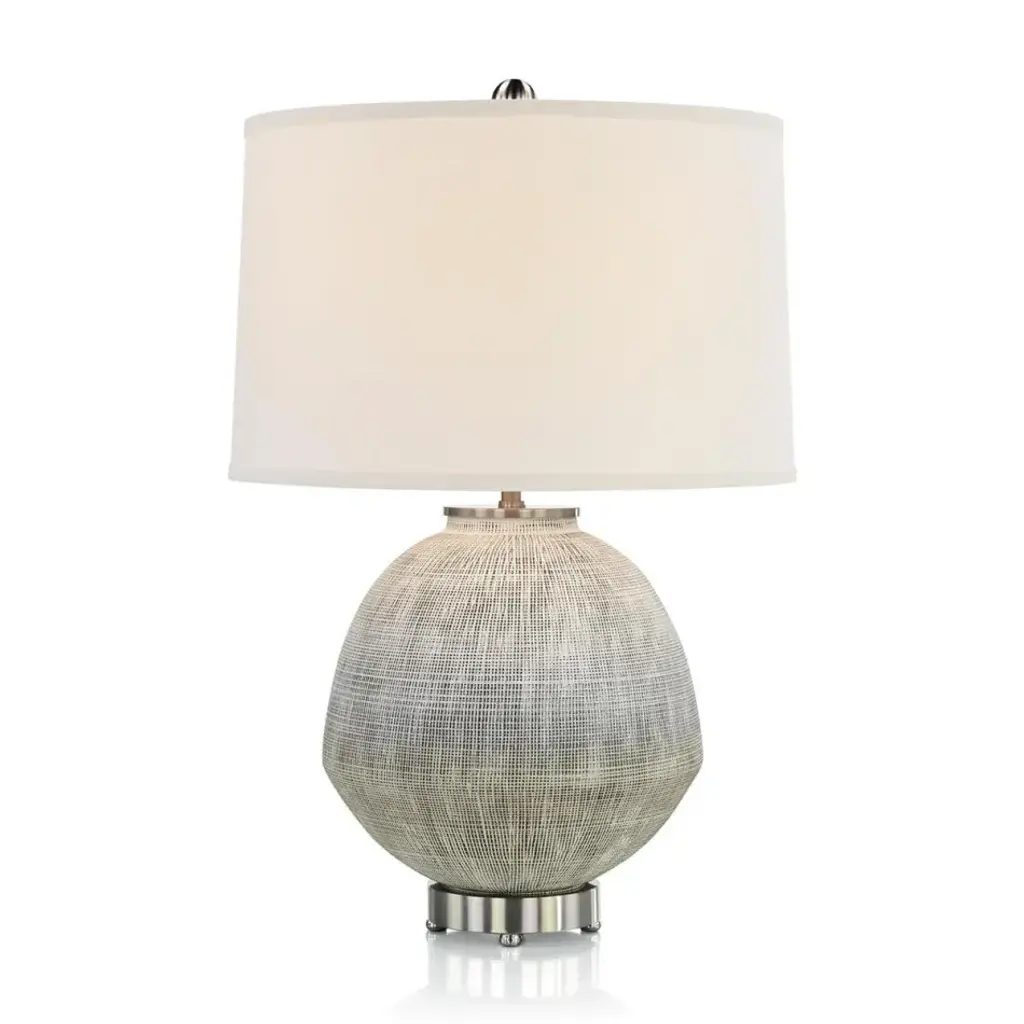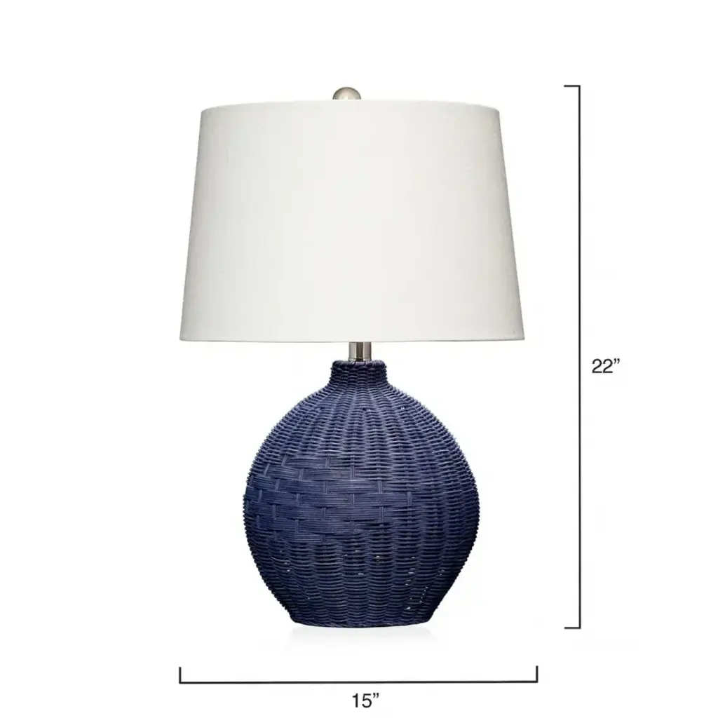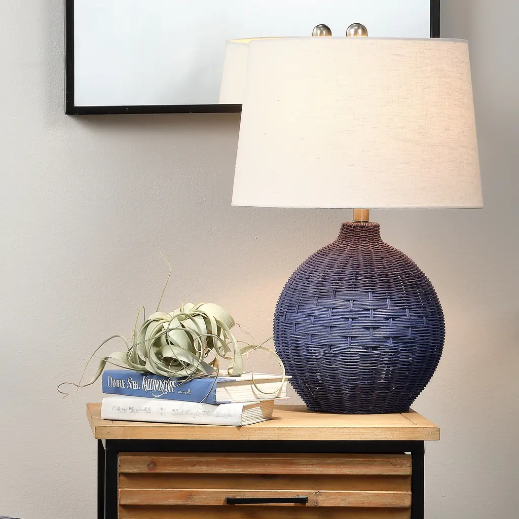 As light and airy as the ocean breezes that perfume Cape cities from Europe to the US, to Africa, this globally inspired table lamp is an exceptional choice for today’s contemporary casual interiors. Its pleasingly round base is handcrafted of rattan in indigo or natural. We top it with a white rolled edge tapered shade in 100% linen and a coordinating silver ball finial.