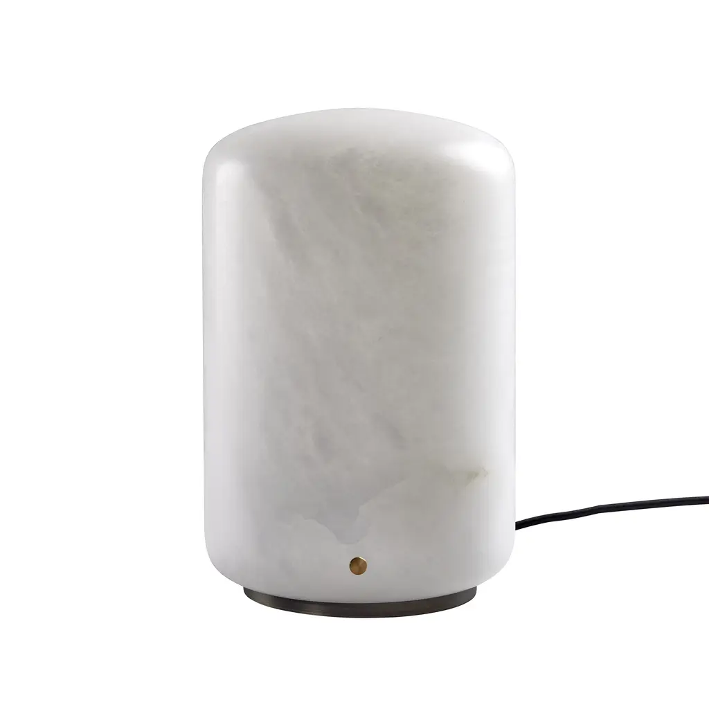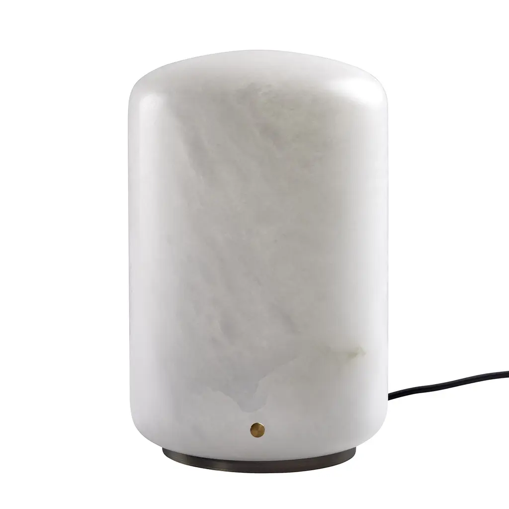 Introduce warm, soft light to any space with the Capsule LED Table Lamp from Carpyen. Featuring a cylindrical shape and smooth curves, this lamp highlights the unique texture and natural beauty of its individually cut alabaster material. Mined in Spain to support local manufacturing, each lamp is one-of-a-kind. Experience the perfect balance of functionality and aesthetic in this elegant piece. Highlights