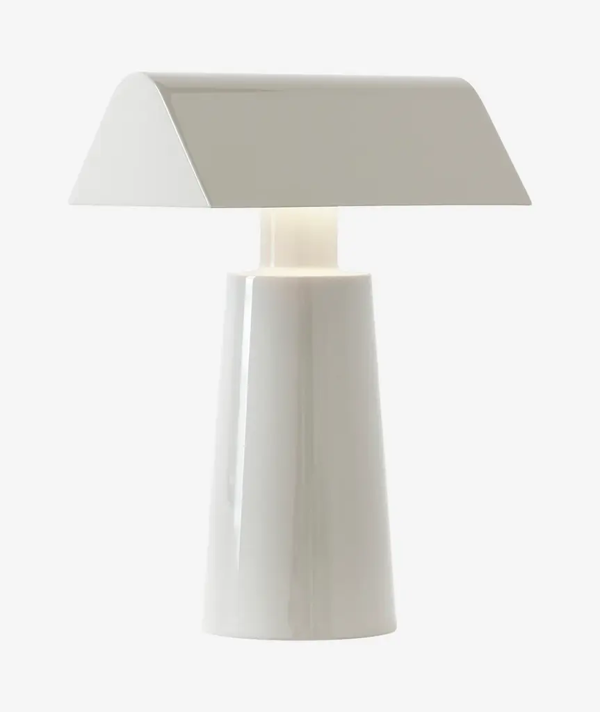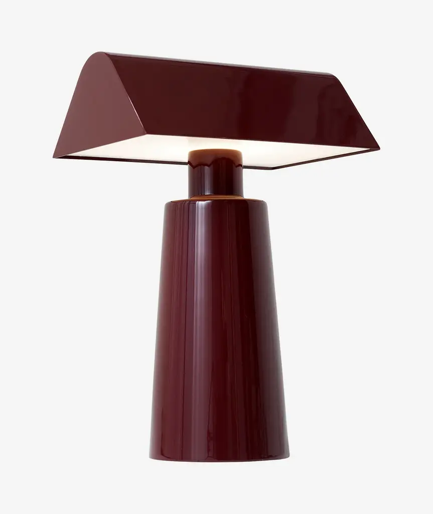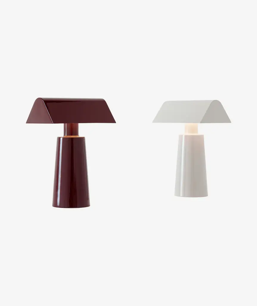 A practical solution to the increasingly blurred boundaries between work and home, the portable Caret reimagines the linear silhouettes of the classic, green-shaded designs – known as 'bankers lamps' – found in historic libraries. Made entirely from lacquered steel, the design features a rounded base and a long, pyramid-shaped top that emits a soft, diffused light.