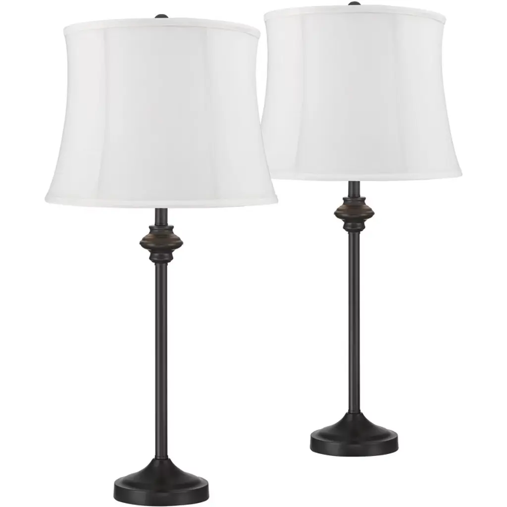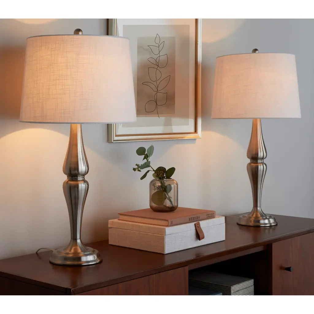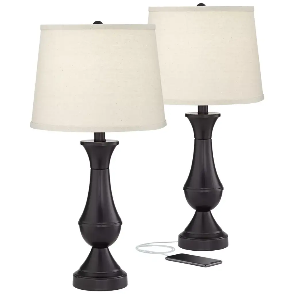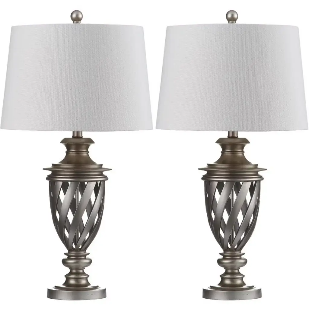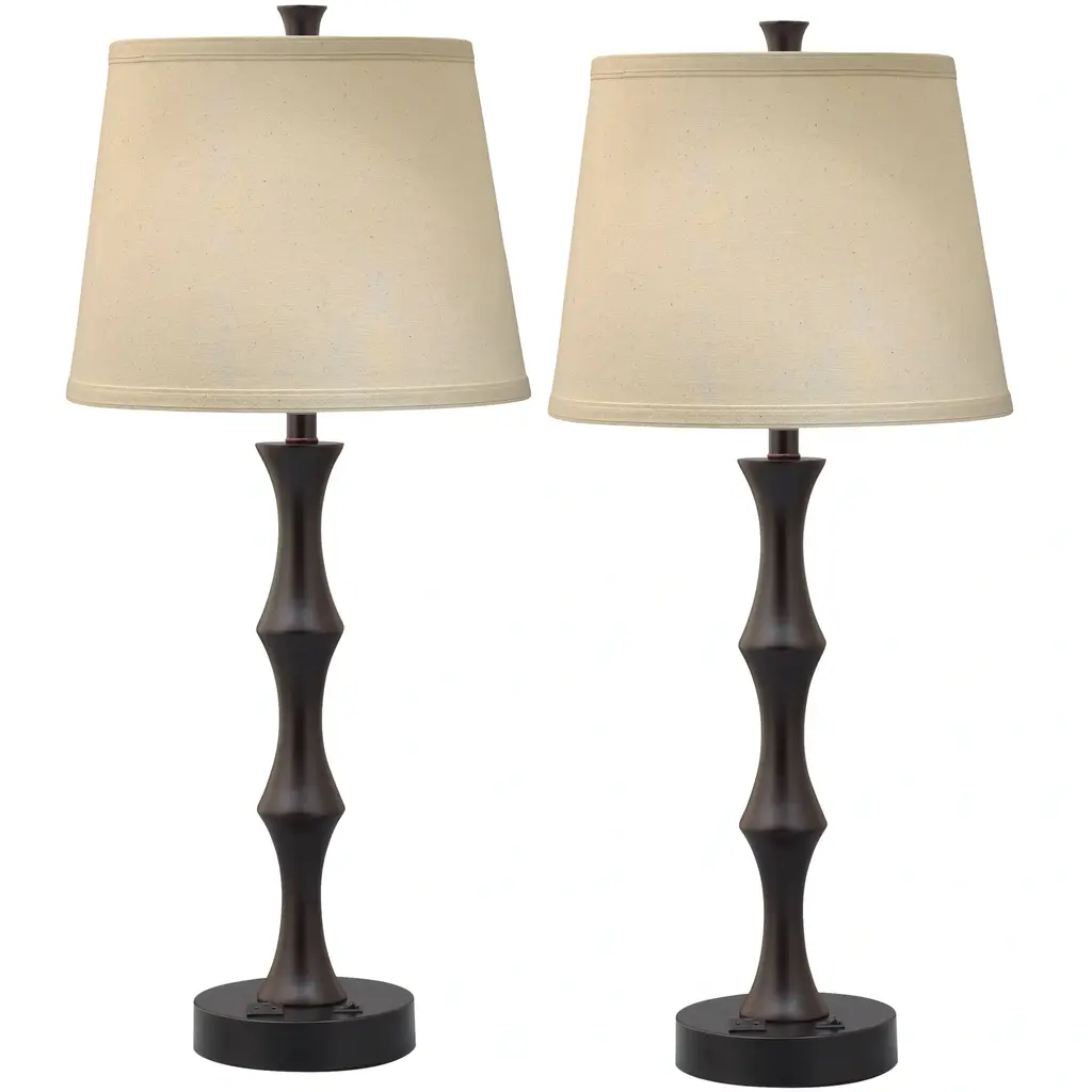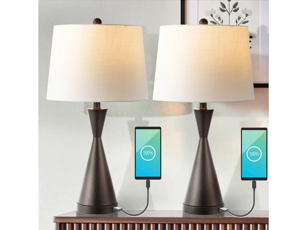 Standard Lamp Specifications for #UGM199:Product Type: Table LampHeight: 28Finish: GunmetalConstruction: SteelSocket: (1) Aluminum 3-way Med. Base Type A 150W Max socket(s) - Bulb(s) not incSwitching: (1) On/Off turn knob switch(es) located on the socket.Cord: 6.5" long (from base) black SPT-2 cord set with a 2 prong polarized plug.USB Port: (1) 10W/2A USB port (s) .UL/CUL and/or ETL listed: YesHarp Size: 9 inches (including the saddle)