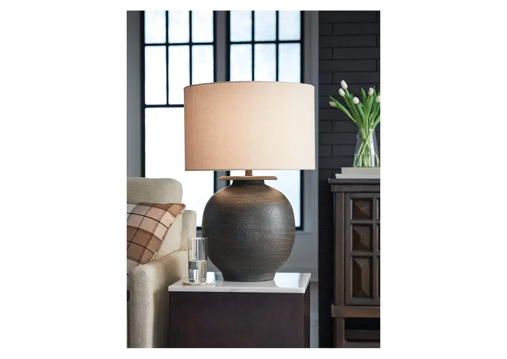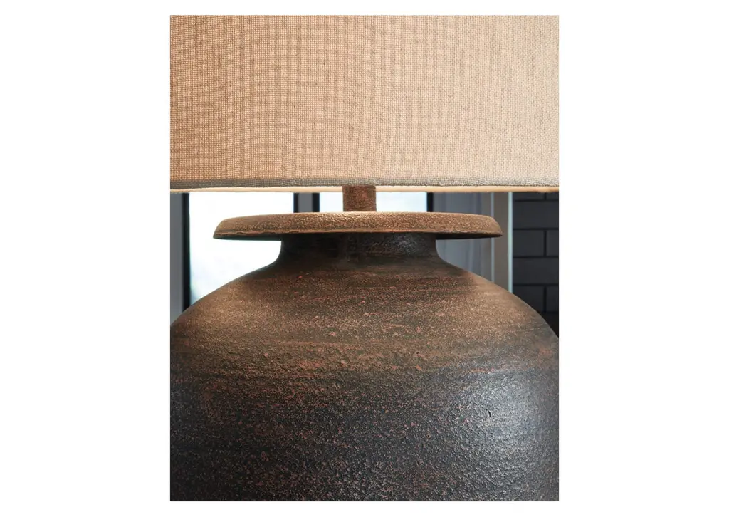 Brighten up your space with the casual, earthy elegance of the Carlenbury lamp. Outfitted in an antiqued brown hue, its simple curved form ushers in an air of effortless beauty when placed on an accent table or desk. Weight 14.000 lbs. (6.3kgs.)