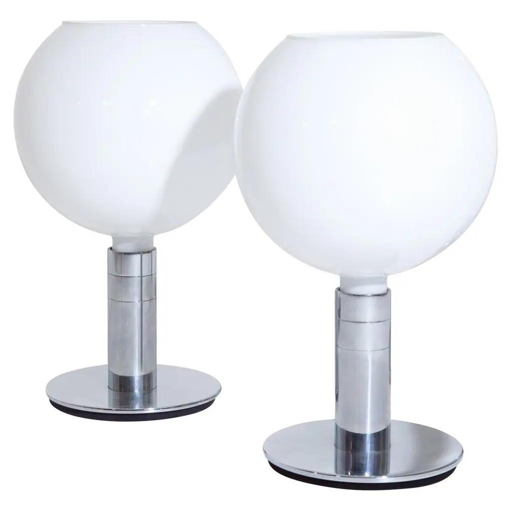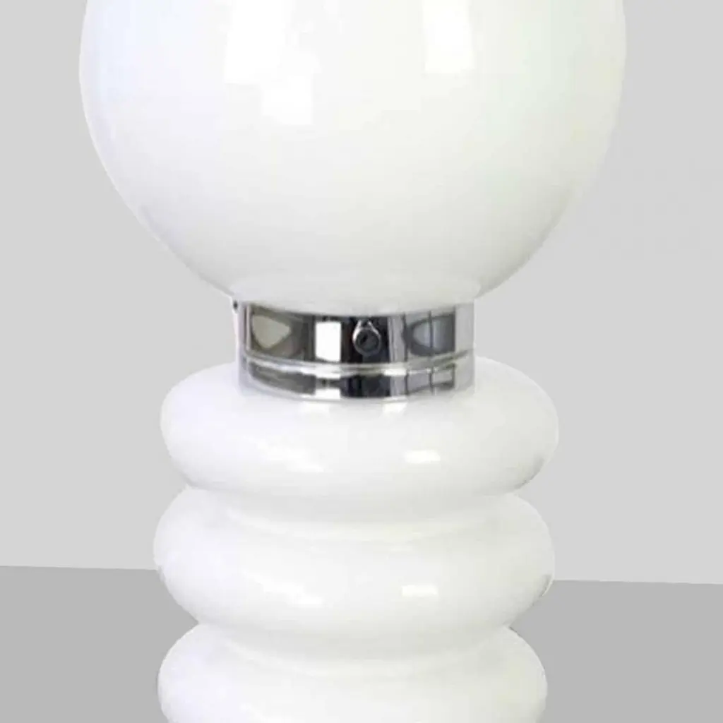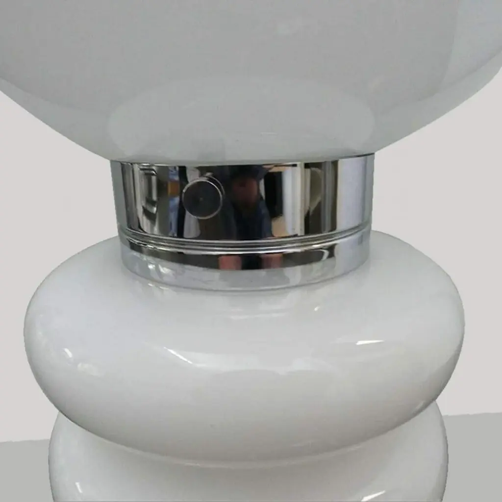 Carlo Nason parquet lamp "Bilboquet" in Murano glass, manufactured in Italy, 1970sCarlo Nason for Mazzega Murano white glass and chrome floor lamp. Featuring two hand blown opal white glass illuminated diffuses with center waist and base strip in chrome plate. Dual floor switch. Modern smooth surface and great shape. Translucent. Sculptural. Statement lighting. Made in Italy.Measures: Height 56 cm, 22 inchesDiameter 25 cm, 9.8 inchesPlease notice the price is for 1 piece, 2 pieces available.In very good condition. Cleaned well wired and ready to use. Each light fixture requires 3 x E14 small bulbs (each max 40 watts) LED compatible.