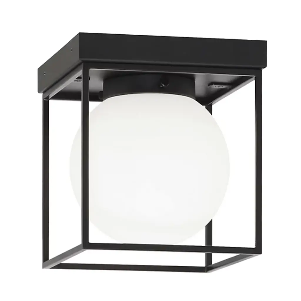 Brighten up your indoor living areas with the small, stylish shape of the Carlotta Flushmount from Huxe. A square, stainless steel canopy sends down a cube frame made from a series of small bars, surrounding a single socket set within a spherical shade of frosted glass. This interplay of sharp, structural corners with more natural curves provides an intriguing modern aesthetic while the lamping shines down a warm, ambient light from above.