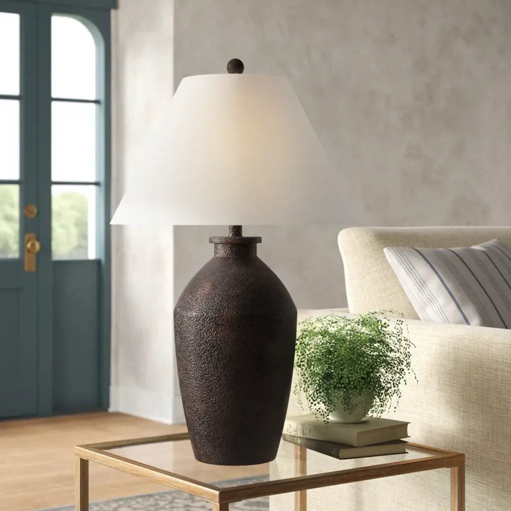 This Carlyn Table Lamp pays homage to the fine pottery of days past, making it perfect for today’s cultured interiors. A white empire shade updates Carlyn ancient inspirations in deep brown resin, and its classic gourd silhouette makes it absolutely timeless.
