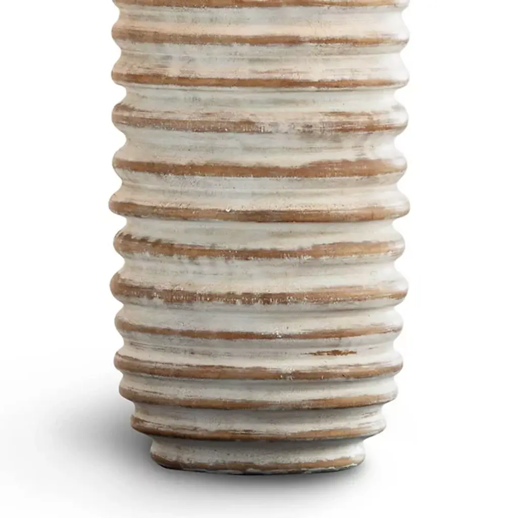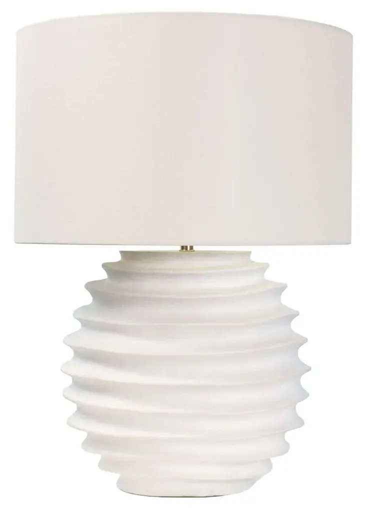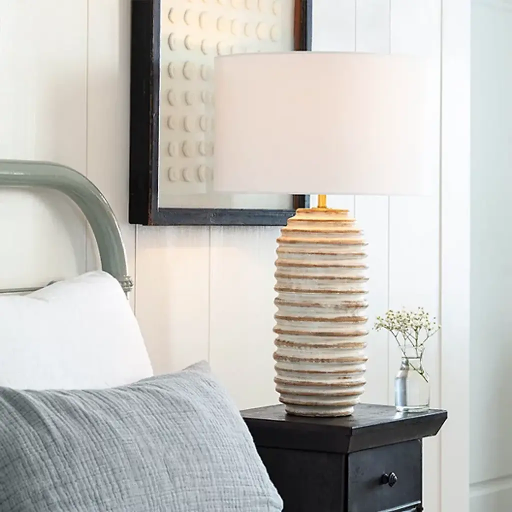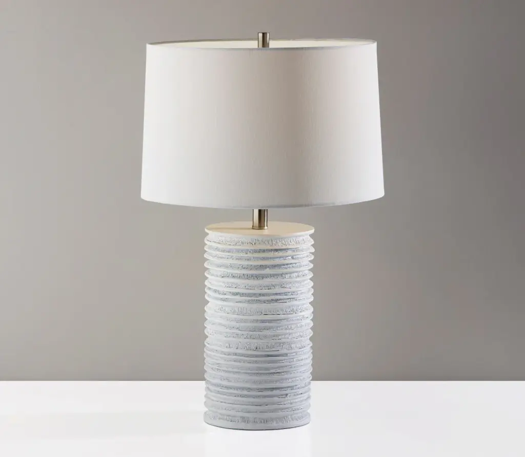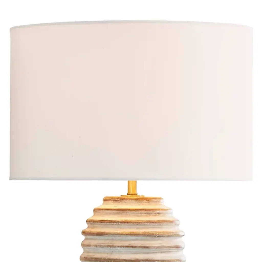 Add a simple touch of nature to the décor of your home. The Carmel Wood Table Lamp from Regina Andrew presents a natural wood body finished with a white-washed and distressed look reminiscent of being aged by the sun and sea. Distinct ridges run along the surface of the piece, leading to a wide, drum-shaped shade that contains a single bulb. The light from the bulb brings the shade to life, creating a calming presence in the home.
