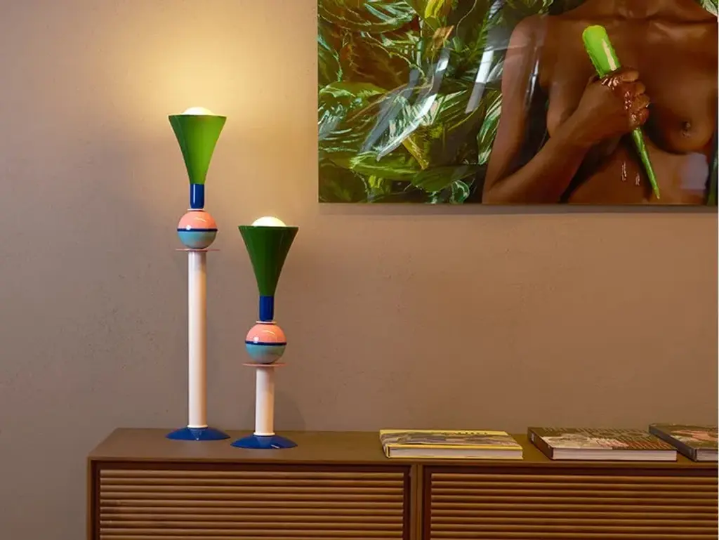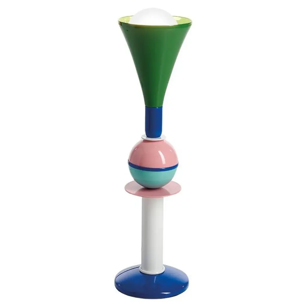The delicate design of Carmen is created by thin and graceful geometric shapes, emphasized by a soft and refined palette of colours. Carmen is a family of table and floor lamps, in which soft and primordial shapes are balanced with the contemporary lacquered aluminium: Carmen is a tribute to audacity of Italian postmodernist Design of Seventies and Eighties. The light that Carmen emanates is sweet and sinuous, accentuated by a lampshade that directs the light upward.1 x 15W - G95 / E27
