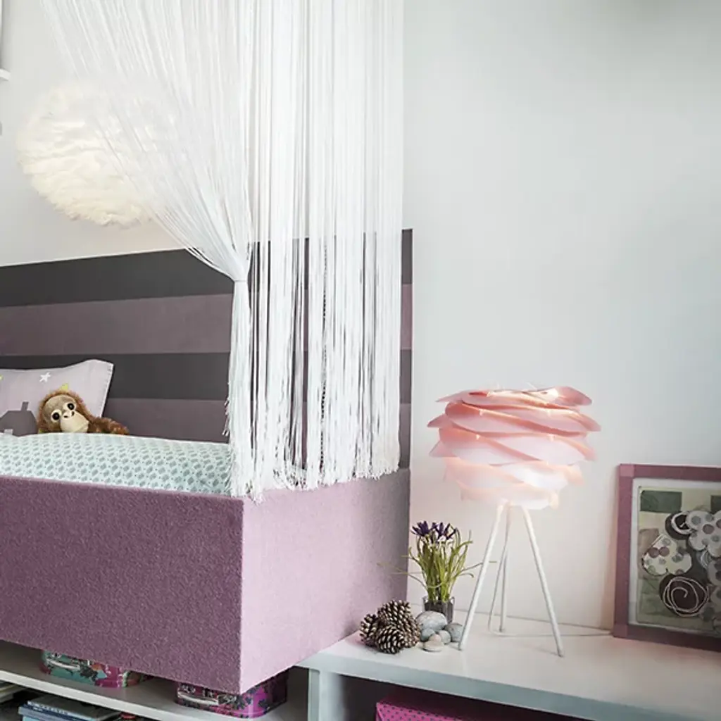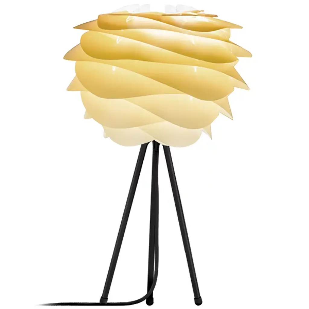 The wavy layers of the UMAGE Carmina Mini Table Lamp have a swirling quality like frosted piping, creating a fully diffused and glare-free ambient light. The layers are attached to the clear structure at an angled position, diverting the ambient light downward while keeping the bulb out of view. The shade can be placed on the tripod base in an upward or downward position, simplifying installation and giving you the option to change the look at any given time.
