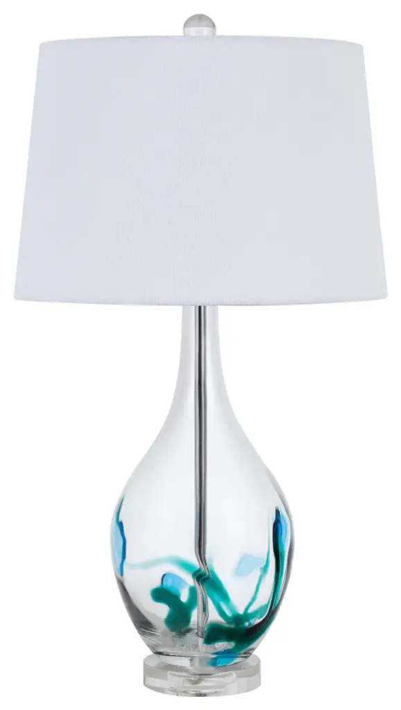30"H This table lamp features painted fabric embedded in clear composition. Shade: (18" X 10") X (18" X 10") X 11", White outside and inside, Linen and Paper. 3 Way, 150 Watt Max, Type A Bulb, 10" Nickel Harp